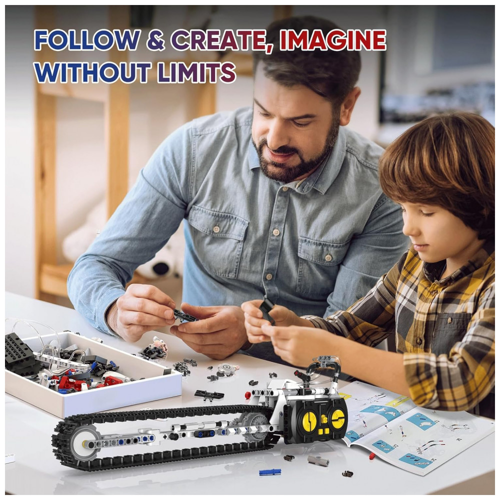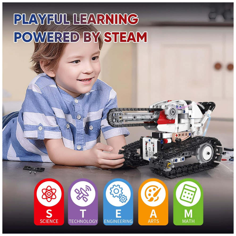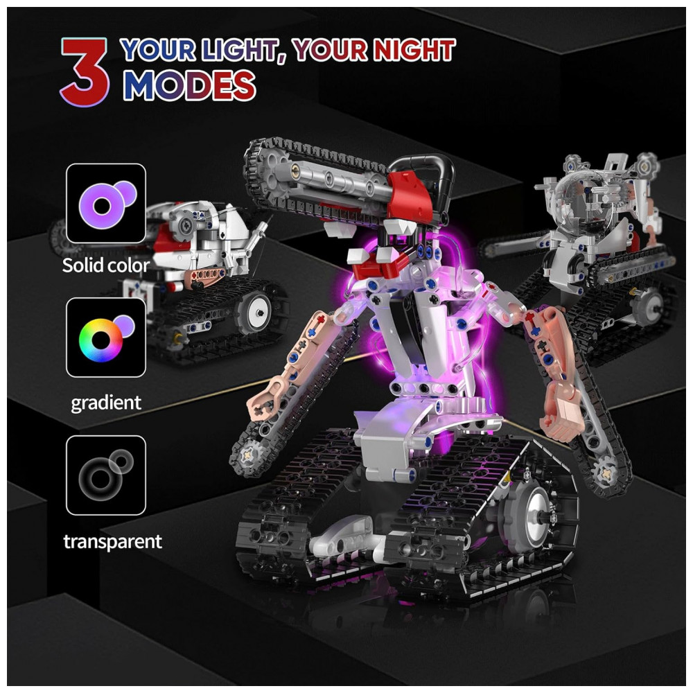 A operação pode ser controlada via controle remoto ou app, oferecendo modos de condução, programação e construção DIY que promovem pensamento lógico, coordenação motora e autoconfiança na resolução de desafios. Ideal para ambientes escolares ou uso doméstico, esse kit transforma o brincar em um verdadeiro laboratório de engenharia divertida e consciente.