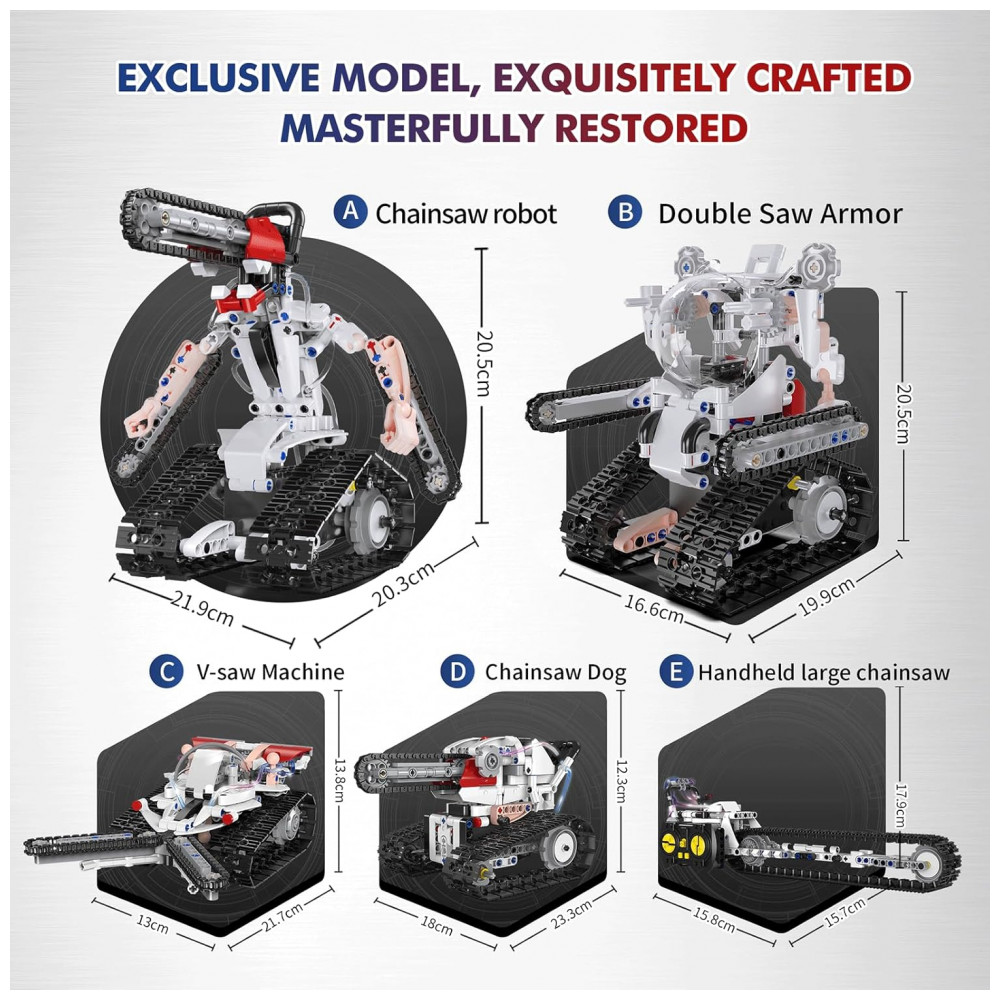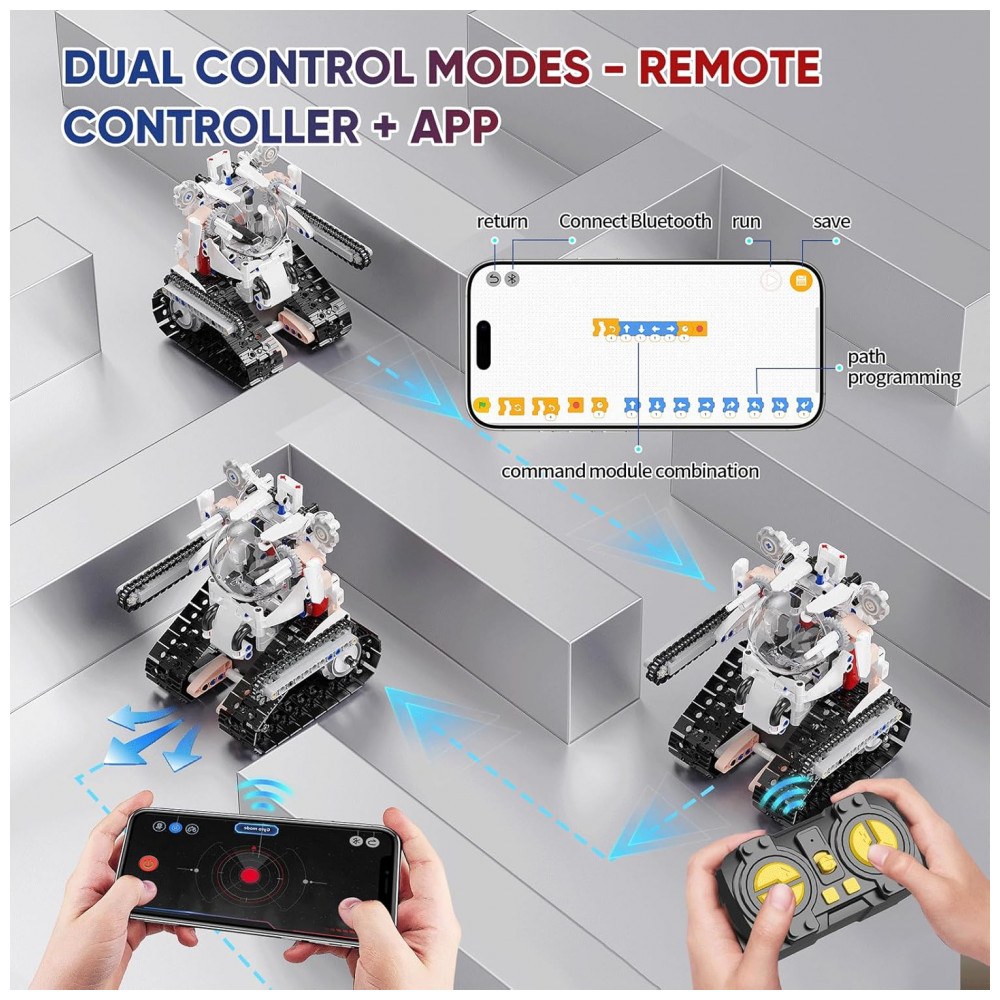 Kit Educativo de Engenharia Azul e Branco – 5‑em‑1 STEM RC Robot Building Kit com 419 Peças Controle Remoto e App para Crianças