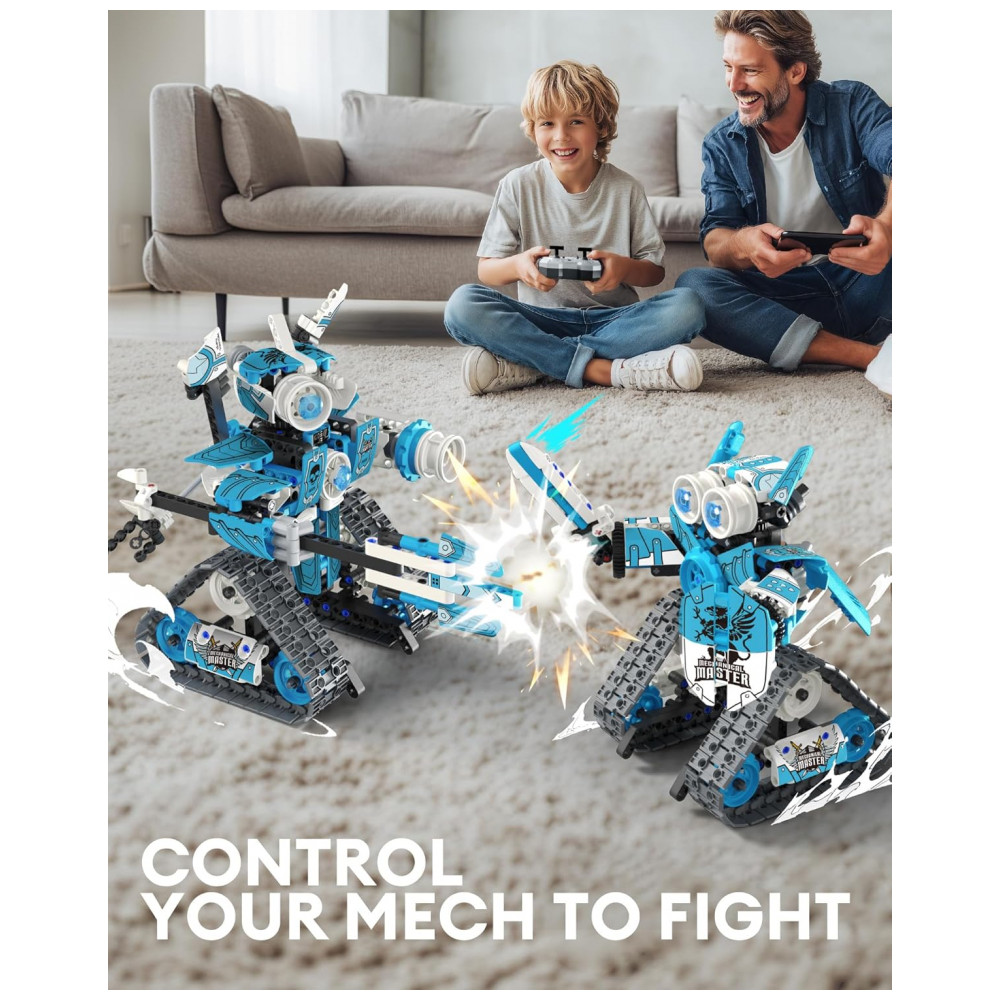 Kit Educativo de Engenharia Azul e Branco – Opmind 5‑in‑1 STEM RC Robot Building Kit com 398 Peças e Controle App/Bluetooth