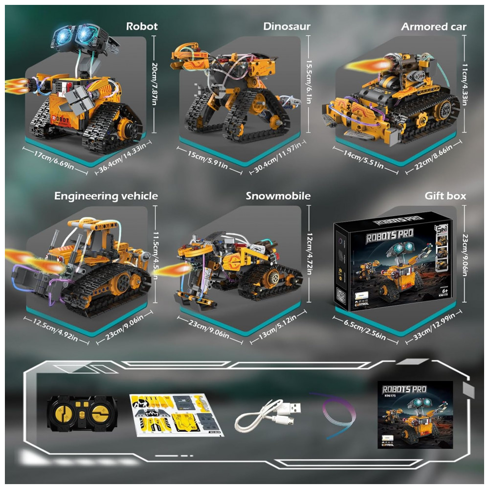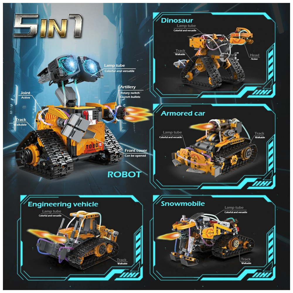 Kit Educativo Preto e Laranja – SliBoeyX 5‑em‑1 STEM Robot Building Kit com 673 Peças Controle Remoto & App para Crianças