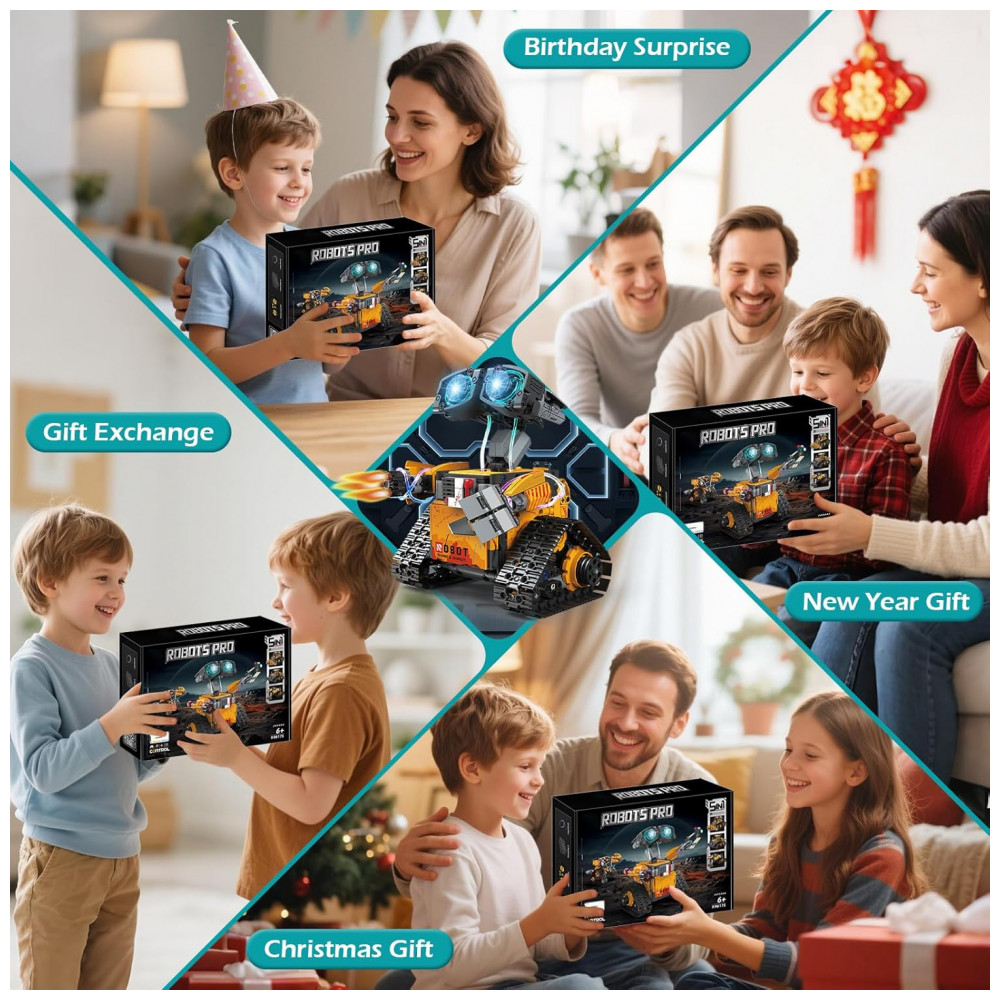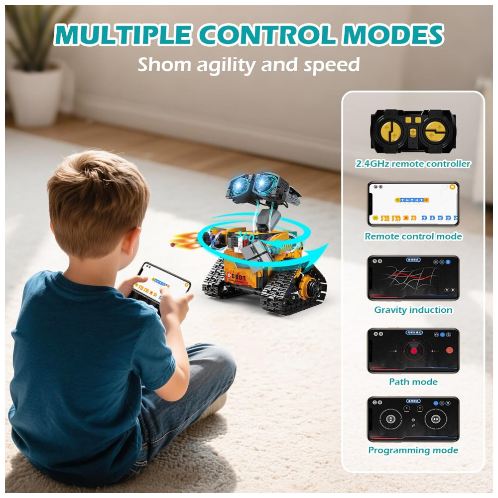 O kit educativo da SliBoeyX combina construção, programação e diversão em um só brinquedo. Com acabamento preto e laranja, o set traz 673 peças para montar cinco modelos diferentes — como robô, tanque, dino, veículo de neve ou veículo de construção — proporcionando múltiplas formas de brincar. Ele oferece controle remoto sem fio e controle por aplicativo, com modos como direção, percurso, gravidade e programação personalizada, estimulando o pensamento lógico, coordenação motora e criatividade.