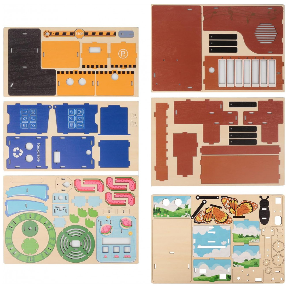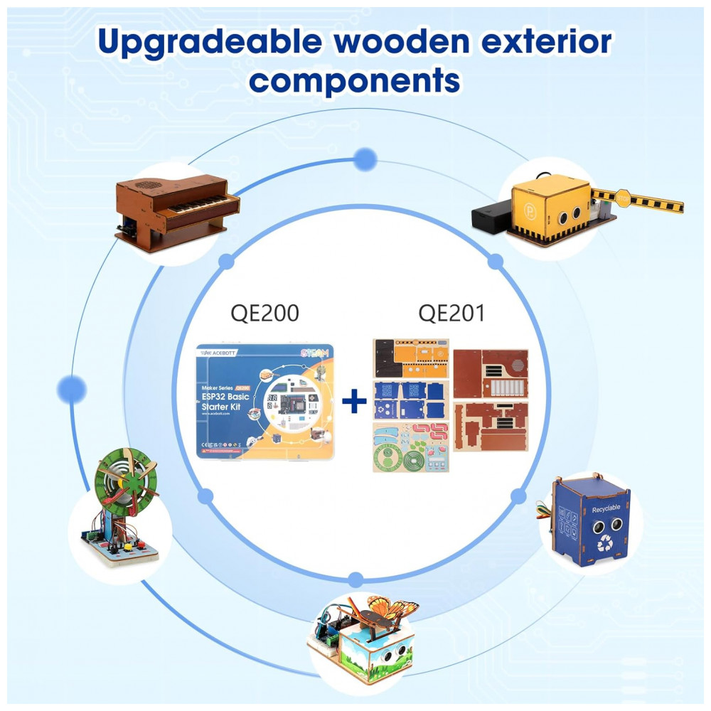 Kit eletrônico ACEBOTT QE200 5 em 1 em madeira com projetos ESP32 Wi‑Fi para experimentos de engenharia STEM