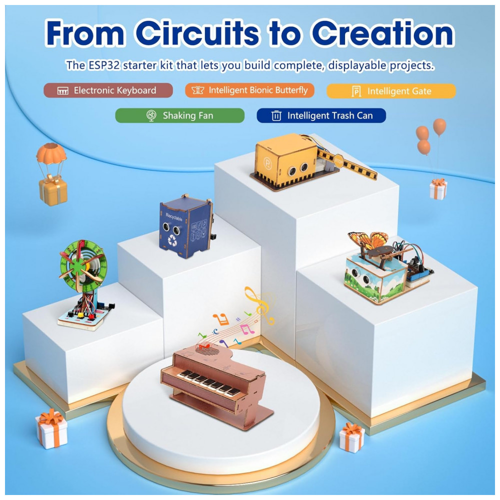 Projetos incluídos (5 em 1): Piano eletrônico, borboleta biônica inteligente, ventilador oscilante, lixeira inteligente, portão inteligente