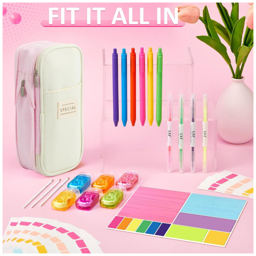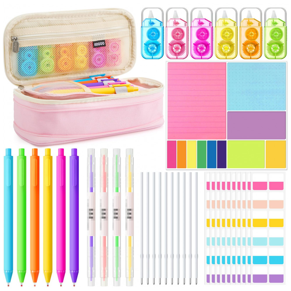 Kit escolar 38 peças Janlaugh neon com estojo canetas em gel marca-texto fitas corretivas e bloco de notas adesivas