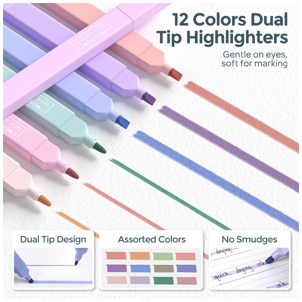 Características da tinta dos marcadores: À base de água, secagem rápida, cores pastel suaves