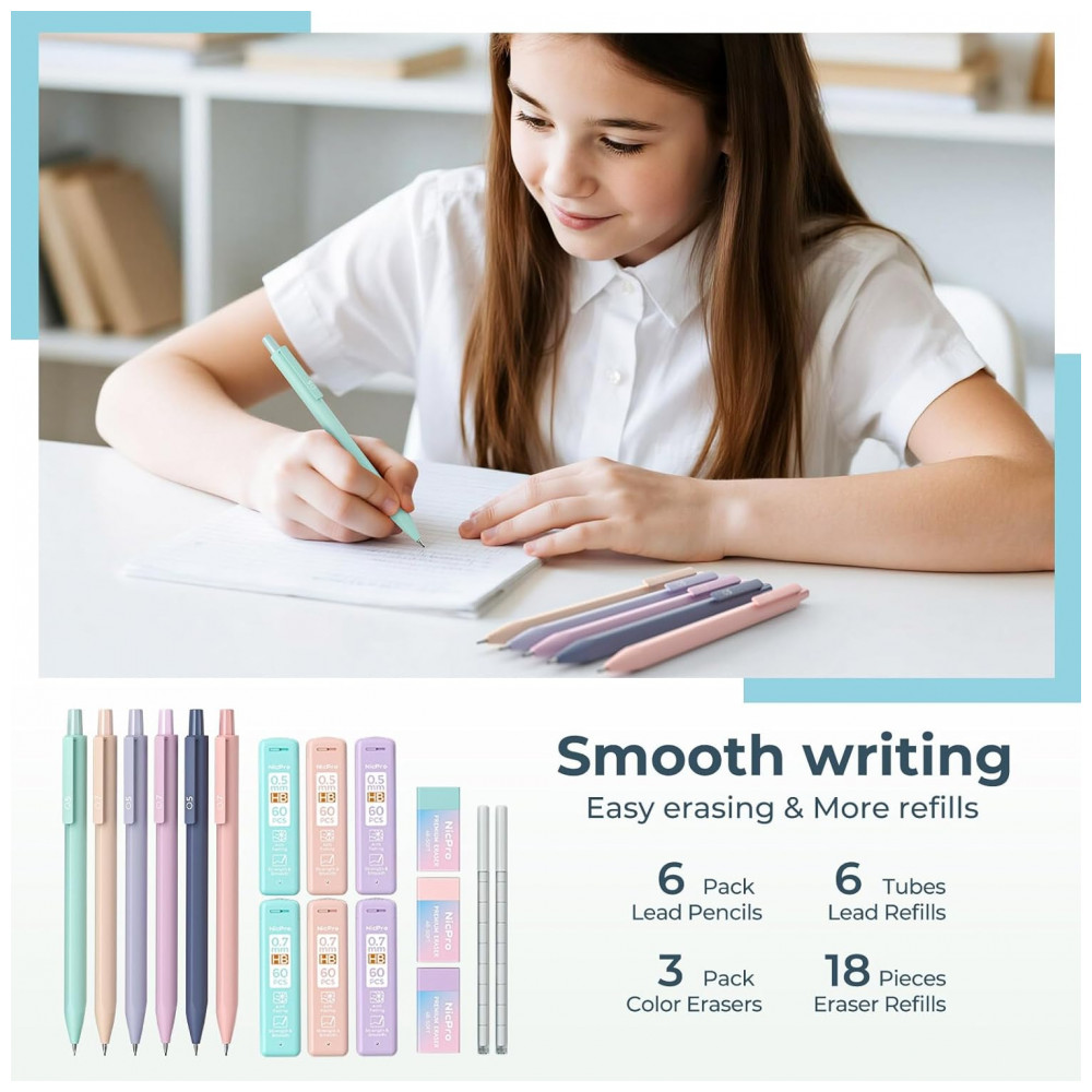 6 lápis mecânicos (pontas 0,5 mm, 0,7 mm e 0,9 mm)