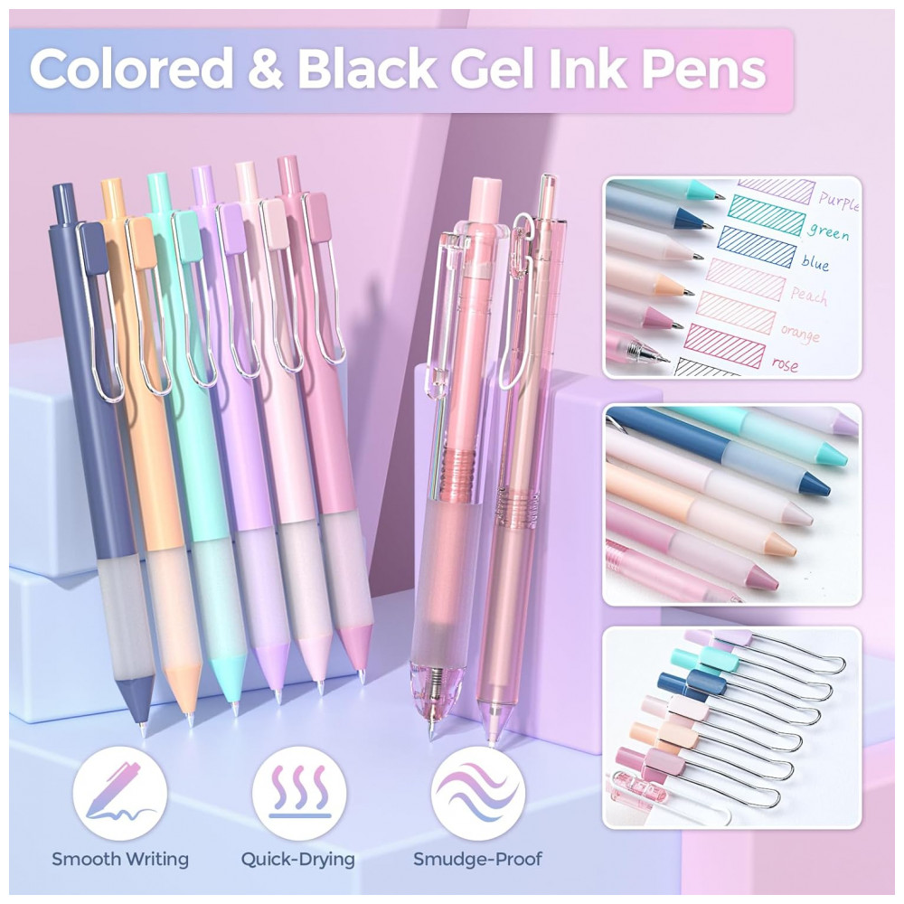 Formato dos instrumentos de escrita: Canetas em gel, lapiseiras, canetas esferográficas multicolor, marcadores tipo marca-texto