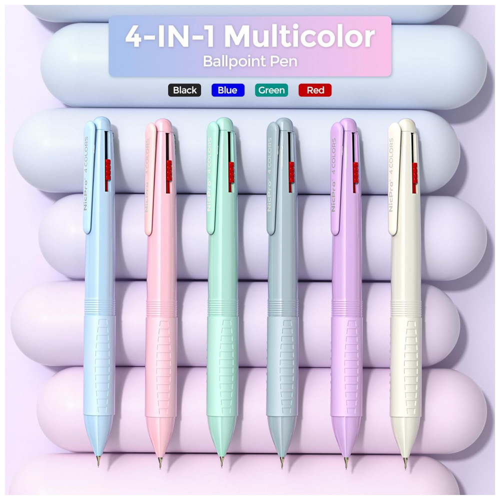 6 canetas esferográficas multicoloridas 4 em 1 (tintas preta, azul, verde e vermelha em cada caneta)