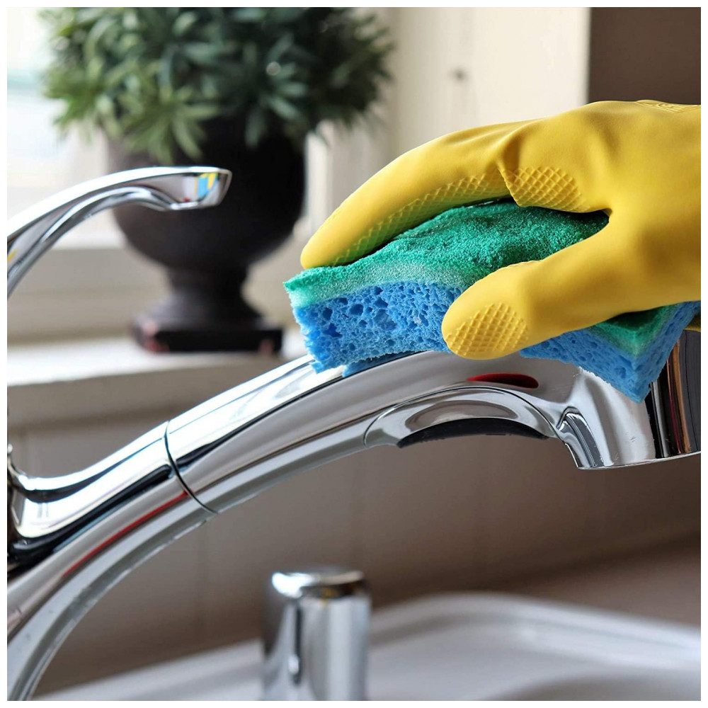 PODEROSA CONTRA A SUJEIRA A esponja multiuso Scrunge da O Cedar é uma esponja poderosa para todos os fins que esfrega, limpa e limpa a sujeira, a sujeira grudada e os restos de comida na maioria das superfícies domésticas