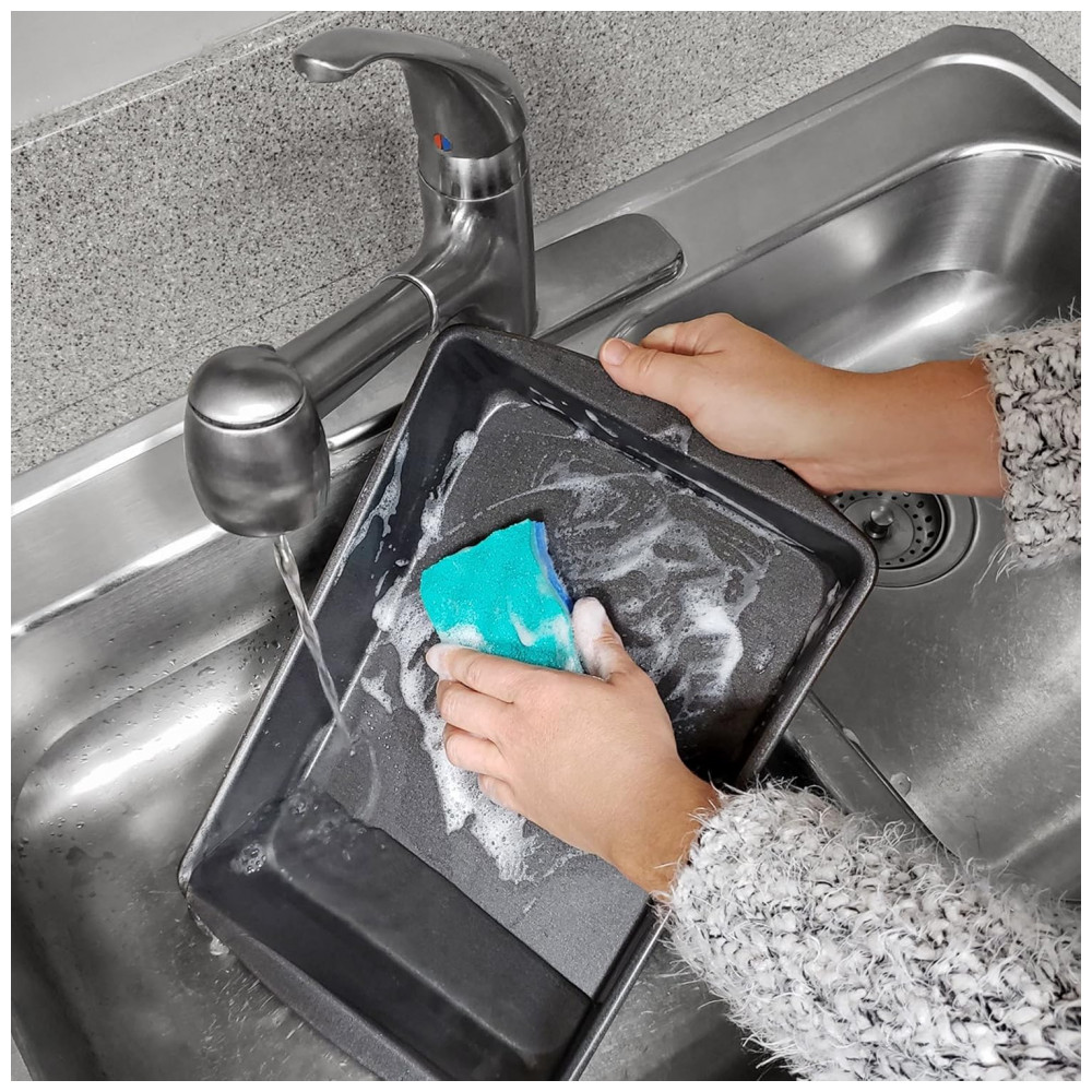 Nossa esponja de esfoliação apresenta uma superfície de lavagem ondulada que quebra e remove a sujeira, o que ajuda a evitar odores grosseiros e fedorentos que ficam presos em esponjas tradicionais ou panos de prato.
