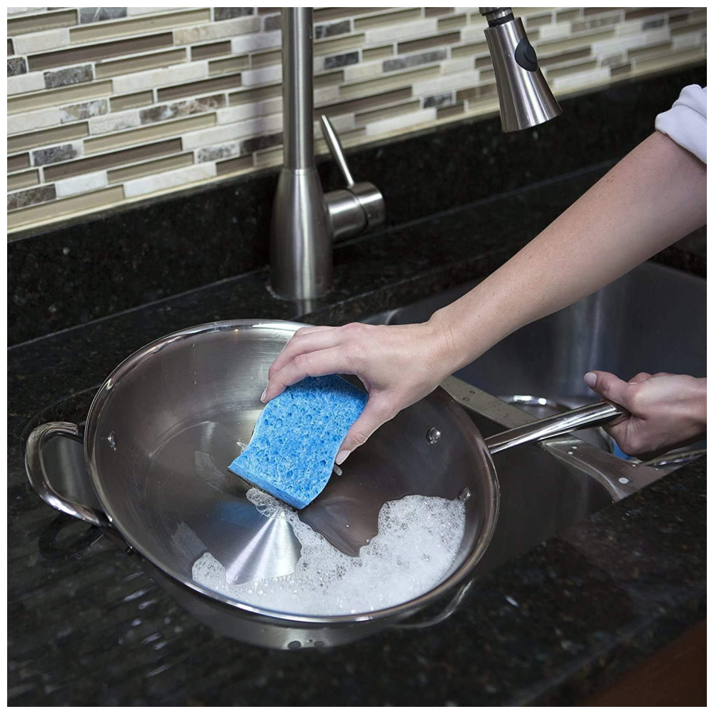 DURAÇÃO LONGA Construída com material durável e para a máquina de lavar louça, nossa esponja de lavagem dura 20 mais que as esponjas de limpeza comuns Para prolongar a vida útil da esponja, enxágue abundantemente e esprema a esponja após cada uso. Para limpar ainda mais a esponja, coloque na máquina de lavar louça.
