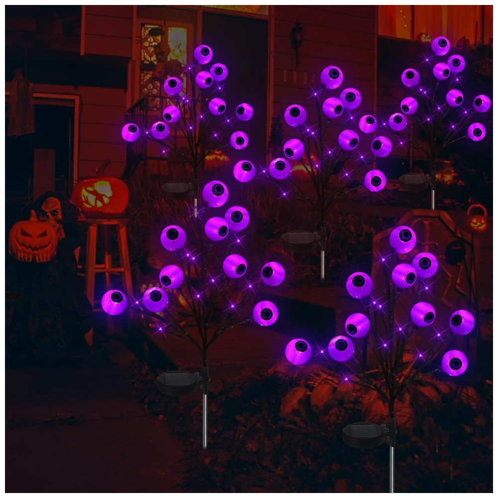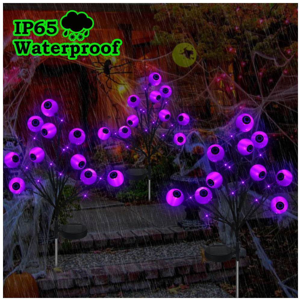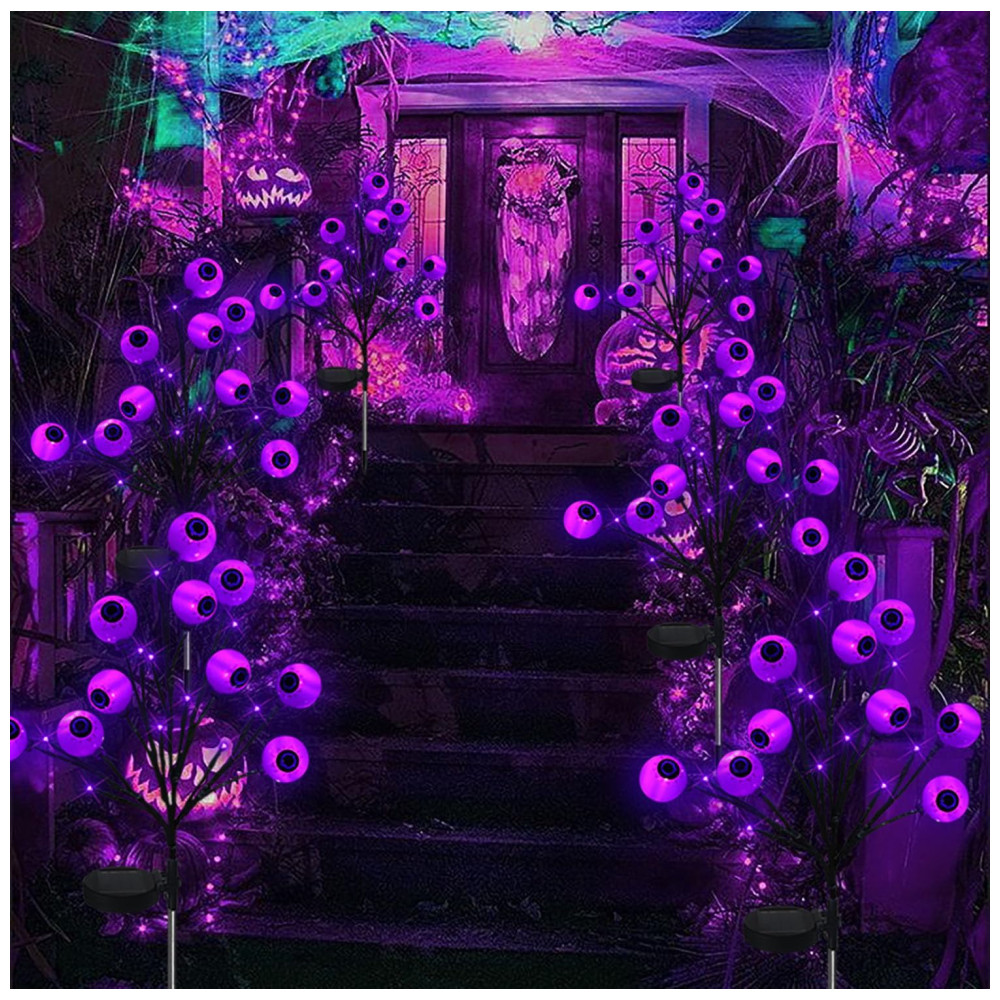 Kit Estaca Solar Iluminada Decorativa para Halloween de Globo Ocular 2 UN Roxo