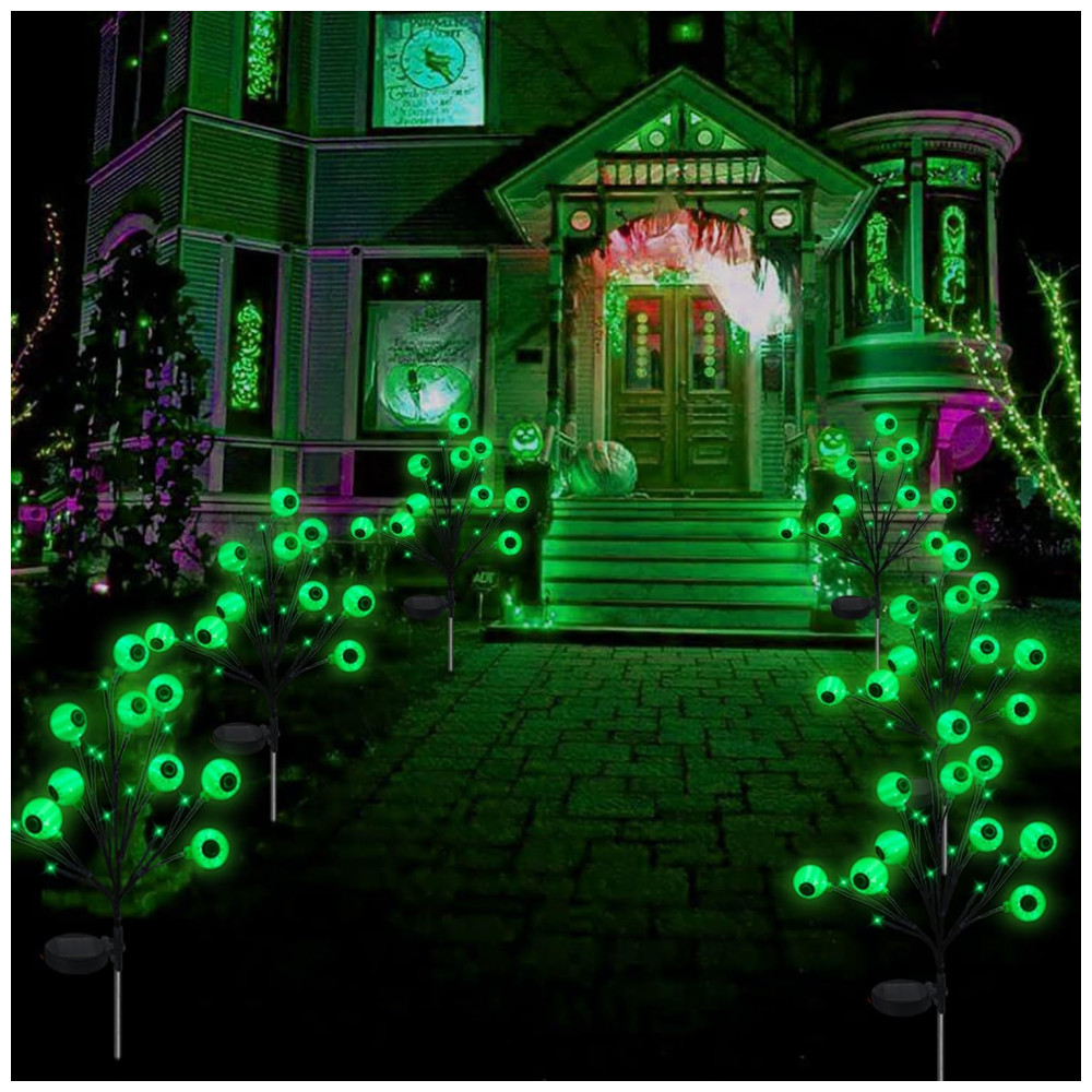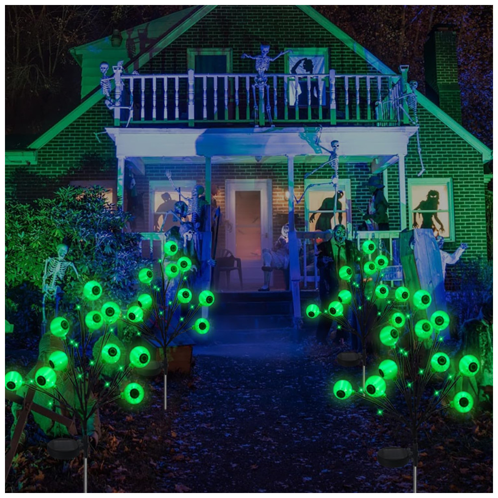 Kit Estaca Solar Iluminada Decorativa para Halloween de Globo Ocular 2 UN Verde