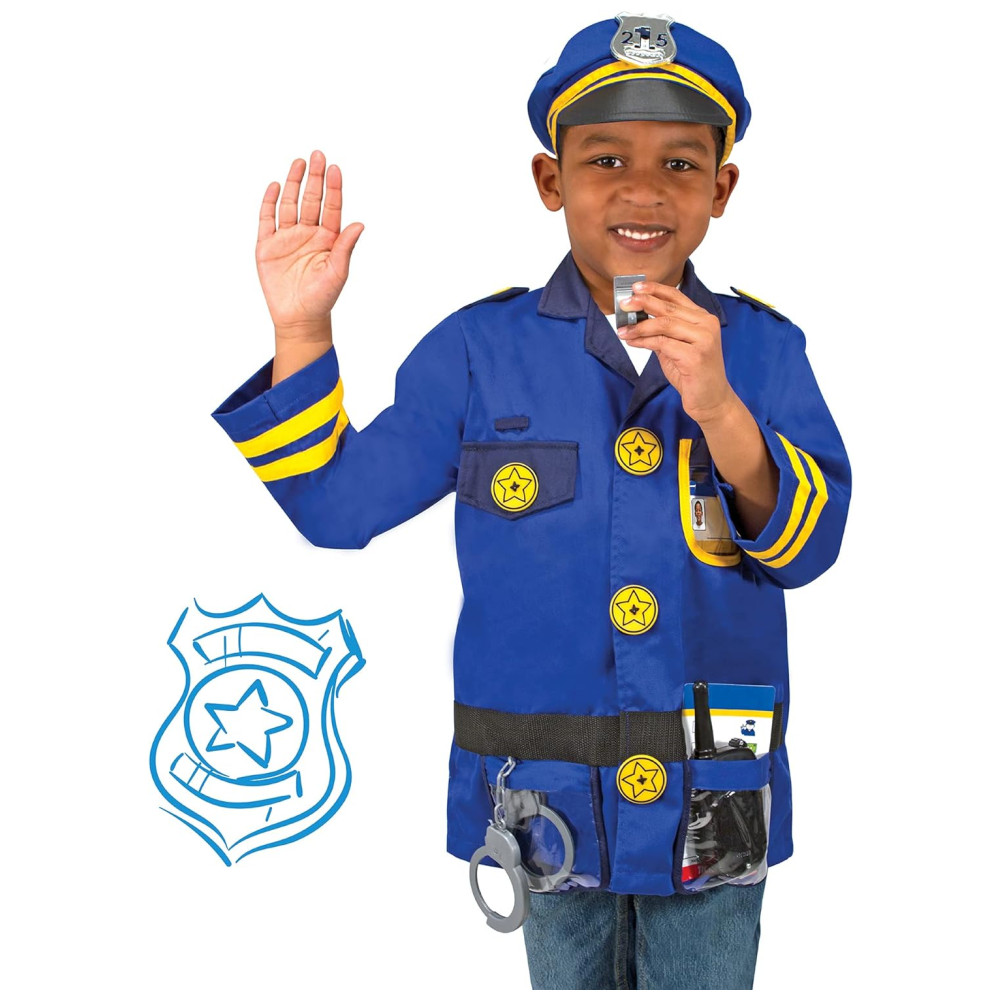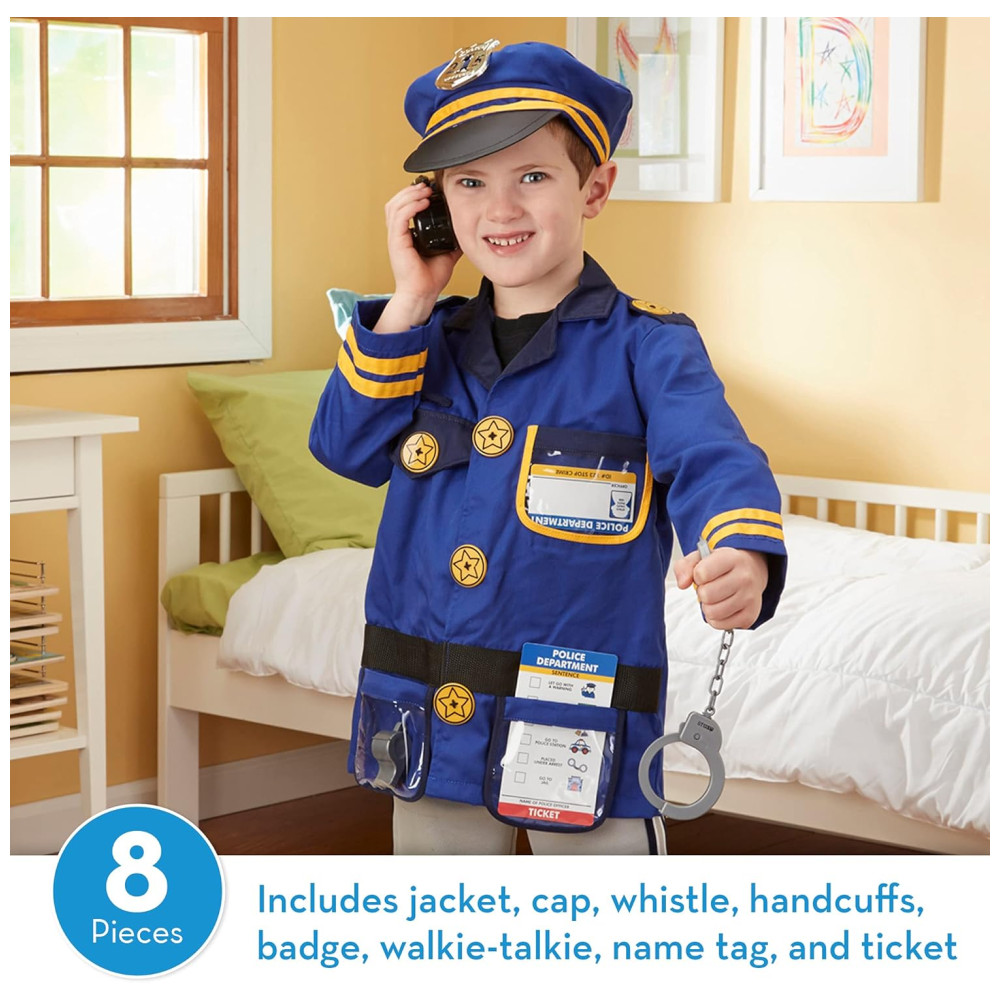 Kit Fantasia Policial Infantil com 8 Peças para Crianças de 3 Anos a 6 Anos Melissa & Doug Azul
