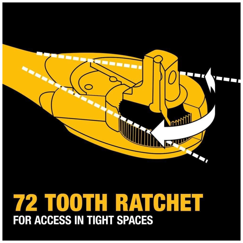 Conjuntos de soquete têm 72 dentes de catraca dando uma oscilação de arco de 5 graus para manobrabilidade em áreas restritas