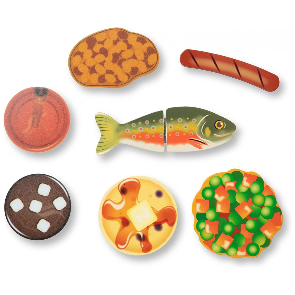 O conjunto de jogos Melissa Doug Lets Explore Camp Stove de 24 peças é ideal para crianças a partir de três anos que desejam explorar a experiência de cozinhar ao ar livre em acampamentos. O fogão de madeira possui botões que giram, queimador ajustável e grelha e chapa dupla face. O produto inclui utensílios de madeira, feltro e comida de madeira, dois pratos e garfos duráveis, xícaras, chaleira, medalhão colecionável e um livro de atividades reutilizável para uma limpeza rápida e fácil.