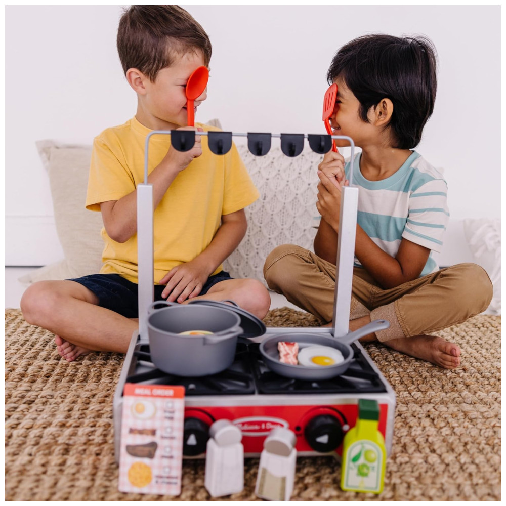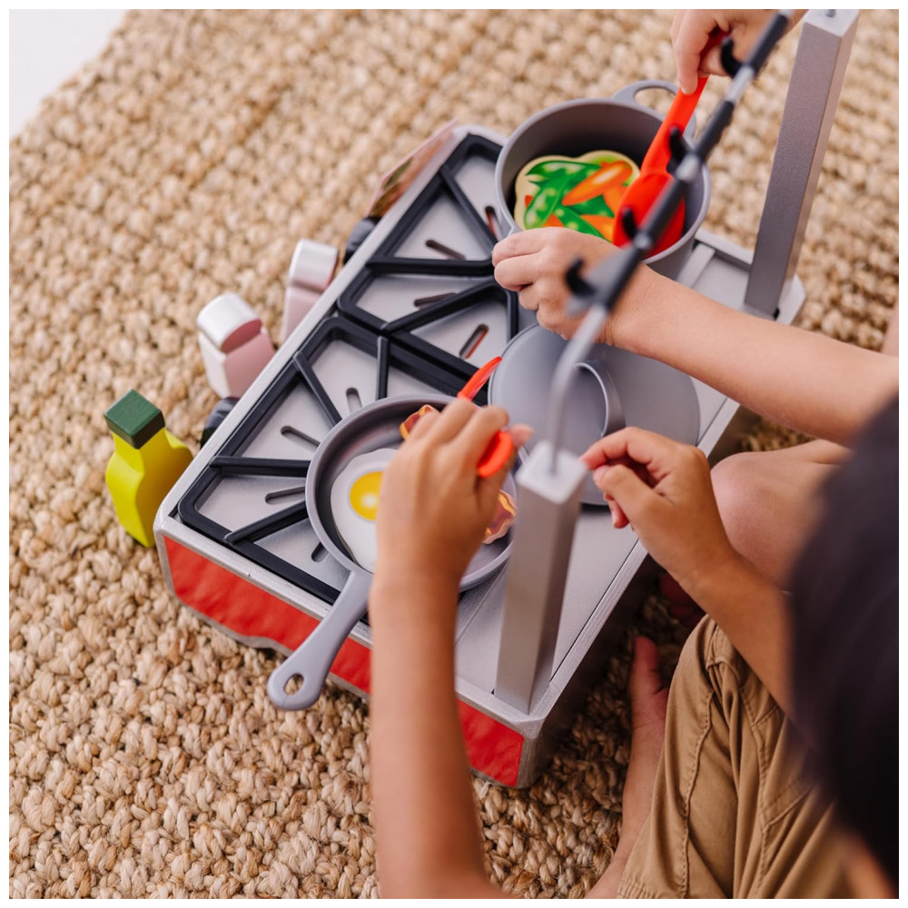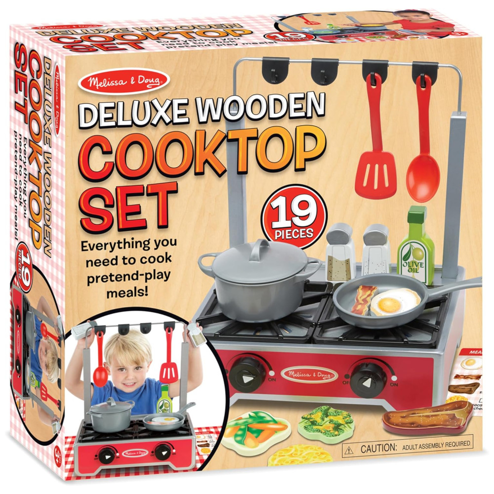 Kit Fogão e Acessórios de Madeira Infantil Deluxe com 19 Peças para Crianças Acima de 3 Anos Melissa & Doug