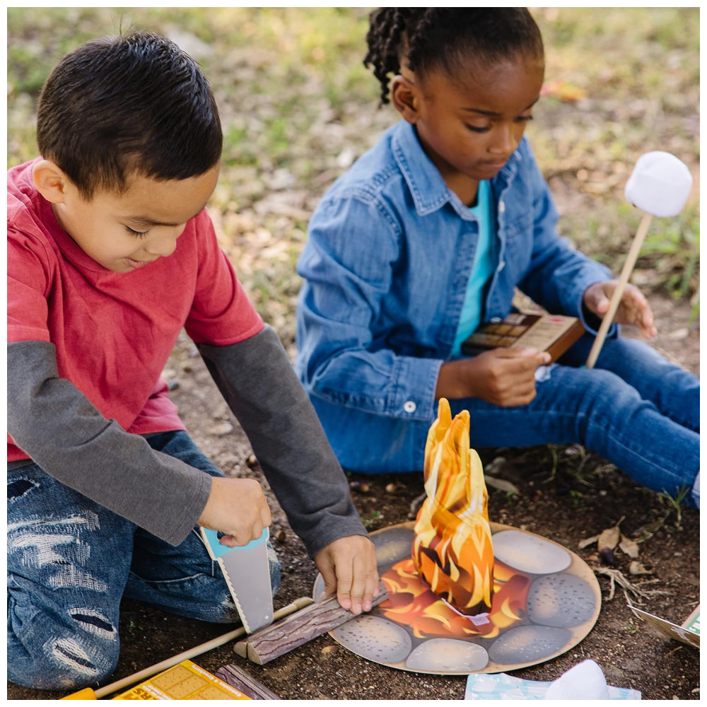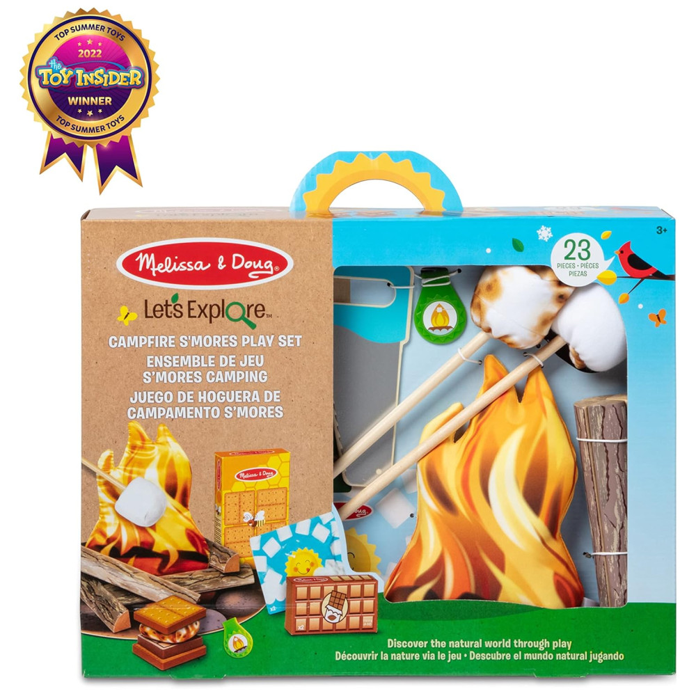 O conjunto de 23 peças Melissa Doug Lets Explore S mores More Campfire Play Set é perfeito para crianças a partir de três anos que adoram brincar ao ar livre. Com um tapete reversível para fogueira, tronco de quatro peças e chamas crepitantes, as crianças podem explorar a experiência de torrar marshmallows ao redor de uma fogueira.