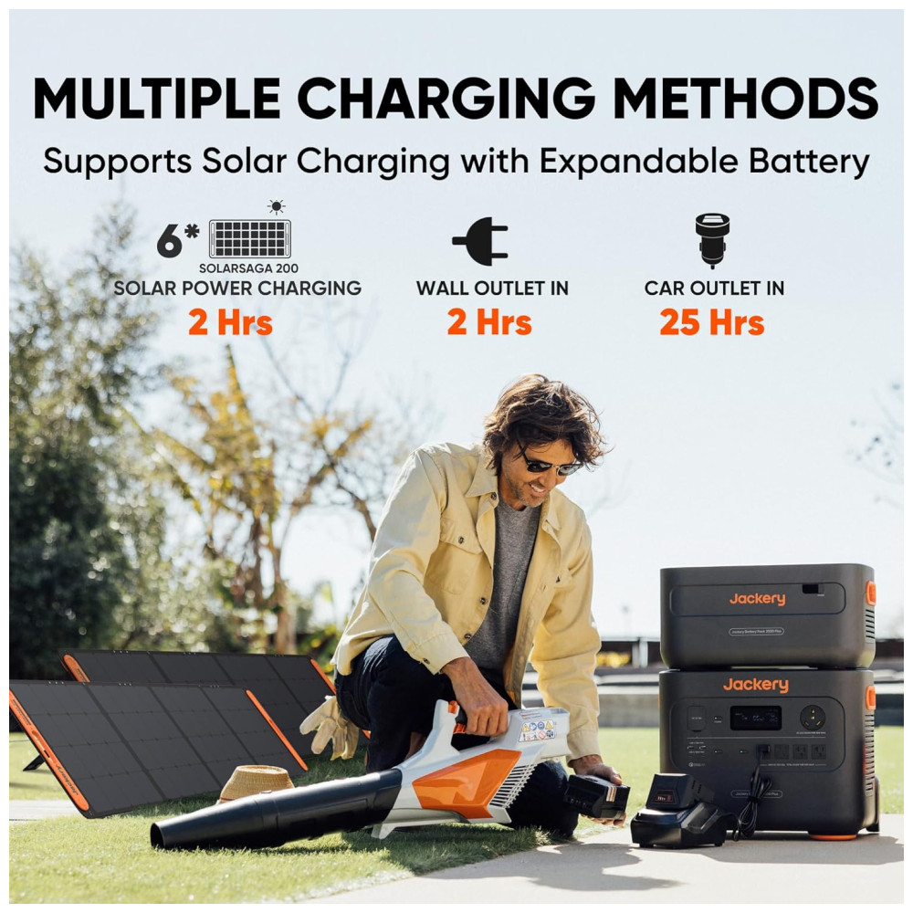 A Jackery 2000 Plus é uma estação de energia com capacidade gigantesca de 2.042,8 Wh, capaz de alimentar dispositivos de carga pesada de até 3.000 W, satisfazendo todas as necessidades de energia externa ou uso doméstico. Além disso, ela opera com apenas 30,0 dB, deixando você com total tranquilidade. A estação de energia pode ser carregada totalmente em apenas 2 horas do nível de bateria de 0 a 100, conectando a a painéis solares SolarSaga 200W ou conectando a tomadas de parede. O Explorer 2000 Plus suporta até 5 conjuntos de baterias expansíveis com potência expandida de 2 kWh a 12 kWh. As estações de energia Jackery Explorer 2000 Plus podem ser conectadas em paralelo para expandir a capacidade para 24 kWh, tensão para 240 V e saída para 6.000 W. O Jackery Explorer 2000 Plus é altamente resistente à temperatura, garantindo que as células operem de forma eficiente e segura. Diferentes tipos de proteção, incluindo resistência ao choque e retardamento de fogo, oferecem carregamento seguro completo. Graças à inovadora tecnologia de carga rápida ChargeShield da Jackery, a vida útil da bateria da estação de energia Explorer 2000 Plus é aumentada em 50. A bateria LiFePO4 segura com até 10 anos de uso prolonga a vida útil em grande medida. O modo de carregamento superficial inteligente aumenta ainda mais a eficiência e a confiabilidade.