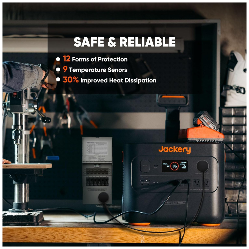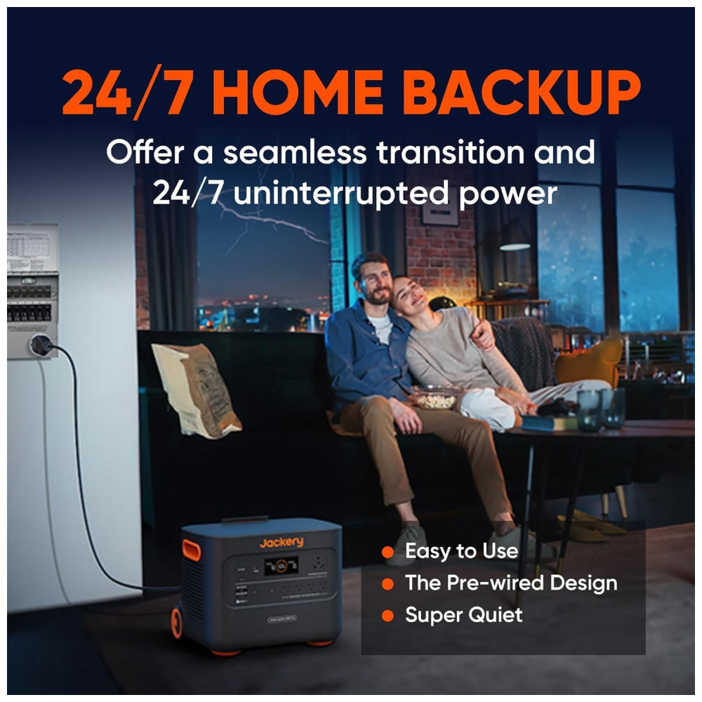 Proteja sua casa contra interrupções e tempestades com a estação de energia portátil Jackery Explorer 3000 Pro e um interruptor de transferência manual. Esta confiável solução de backup doméstico recupera a energia em 0,5s quando a rede cai, oferecendo uma transição perfeita e energia ininterrupta 24 horas por dia, 7 dias por semana, para manter todos os seus dispositivos essenciais funcionando perfeitamente!