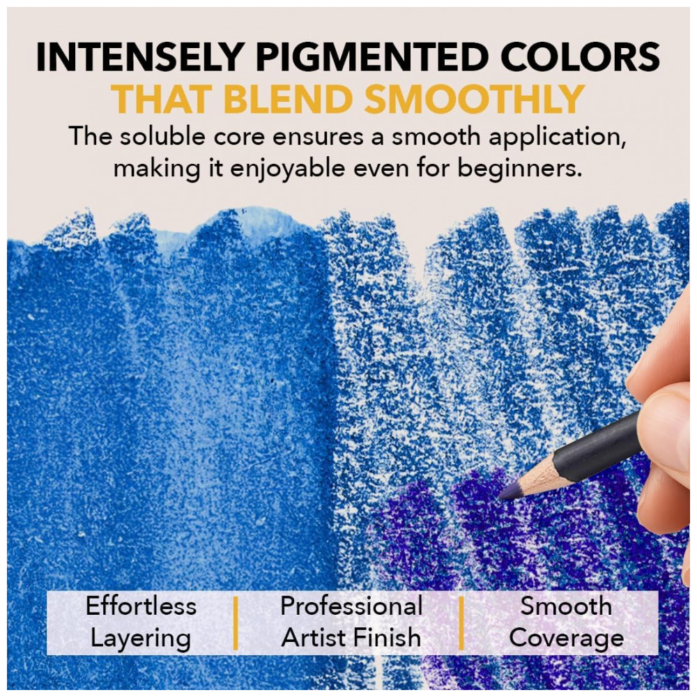 UMA ALEGRIA DE USAR Ativado com um pouco de água e um pincel ou em papel aquarela úmido, suas linhas de lápis derretem, se misturam e se dissolvem lindamente transformando seu desenho em uma pintura. De repente você é um artista de aquarela