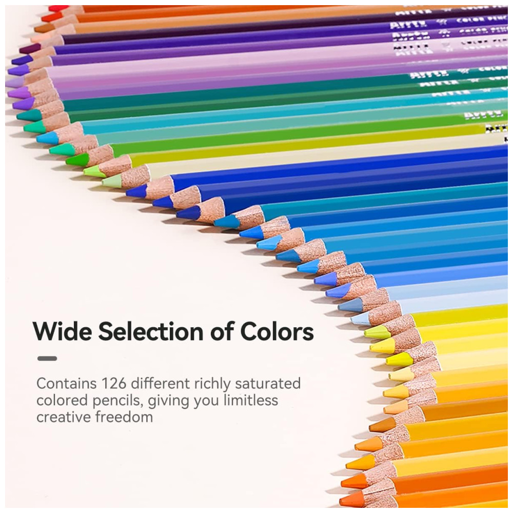 Ampla gama de cores para escolher Uma ampla gama de 126 cores variadas ajuda você a obter uma melhor gradação tonal com sua mistura, criando uma transição suave e agradável. Você pode misturar e aplicar camadas de lápis de cor Arrtx bem e aplicar a cor sem muita pressão por causa da consistência amanteigada e suave.