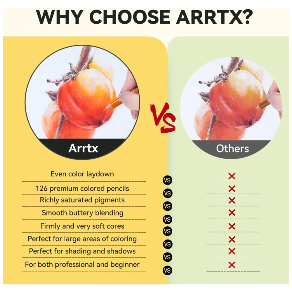 Desfrute de textura suave e resultados vibrantes os lápis de cor premium Arrtx contêm uma alta concentração de pigmentos de alta qualidade, tornando as cores mais ricas e vibrantes. Eles combinam bem com uma aplicação amanteigada e oferecem tons mais ricos e opções mais vibrantes e ideais para desenhar, colorir, registrar no diário e rabiscar.