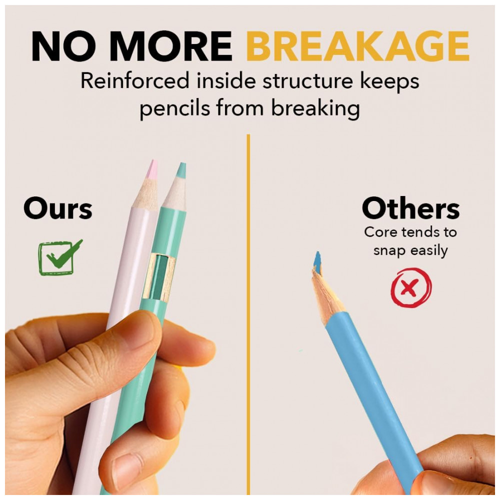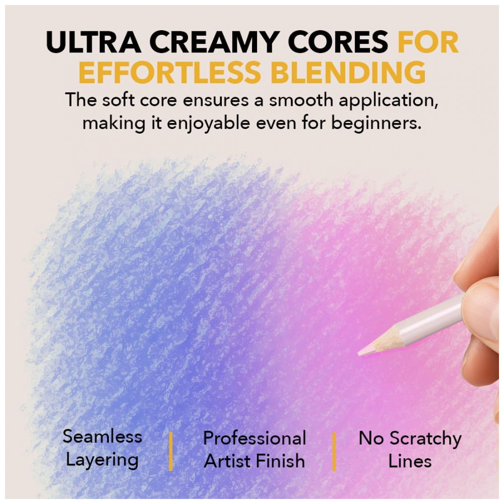 BELAMENTE EXPRESSIVO Pigmentos puros de grau artístico envoltos em basswood para controle limpo e fácil de segurar em uma gama de tonalidades mais leves, suaves, ricas e vibrantes para criar obras de arte evocativas cremosas.