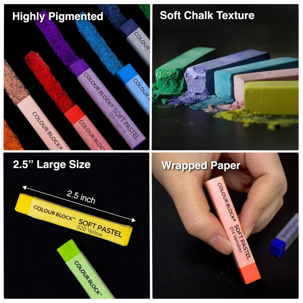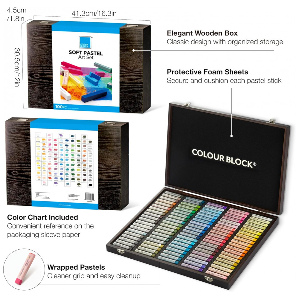 Fácil de usar, fácil de limpar Todos os bastões de giz quadrados coloridos de 100 peças são delicadamente organizados em uma caixa de madeira resistente e leve para menos quebra, poeira e limpeza mais fácil. Os pastéis macios de tamanho padrão de 2 são fáceis de segurar para crianças e adultos. Com papel bem embrulhado, você pode criar livremente sem manchar suas obras de arte exclusivas. Pastéis macios coloridos Color Block garantem que você possa pintar com elegância e limpar rapidamente