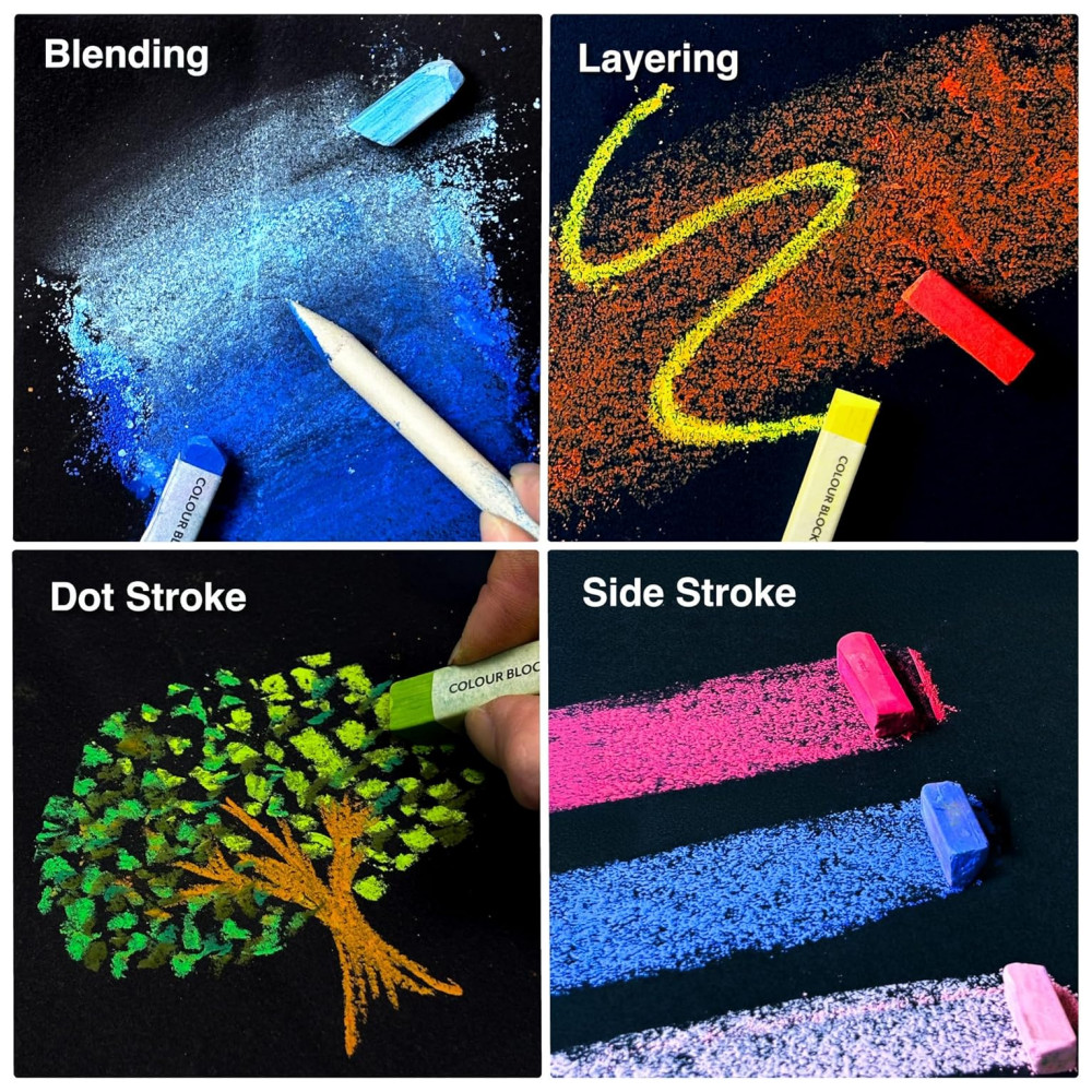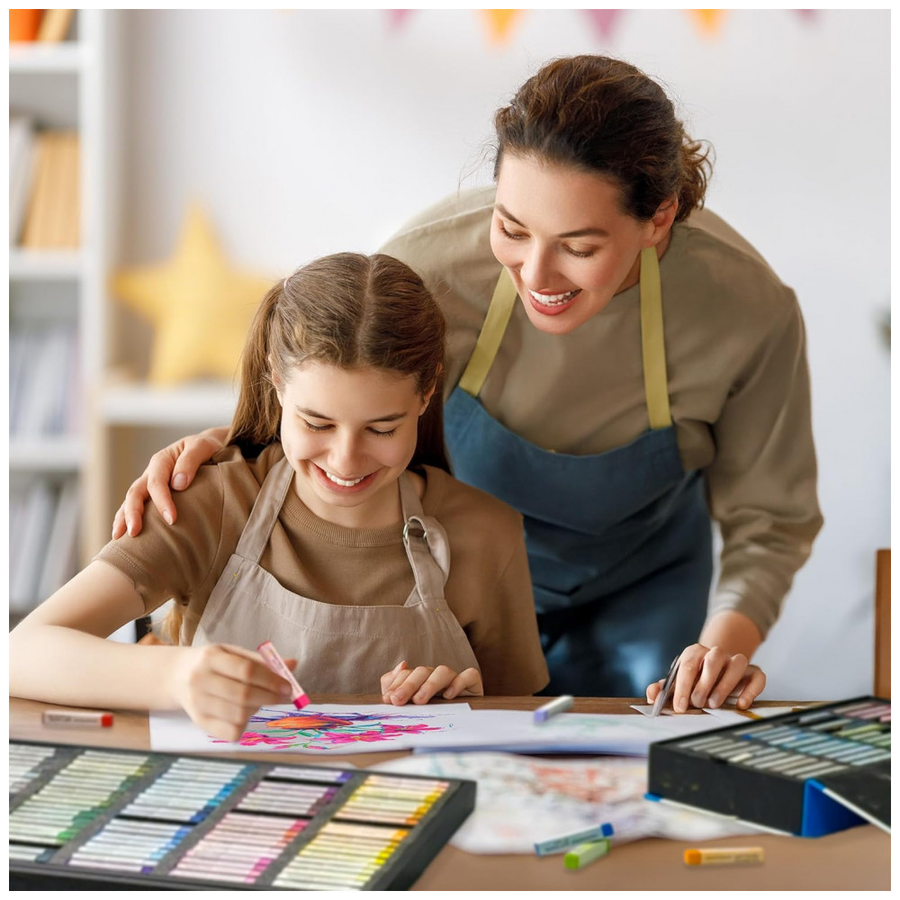 Excelentes efeitos de desenho Mistura, camadas, sombreamento, mistura, pó e gradação, todas as técnicas de pintura pastel podem ser aplicadas facilmente. Com este conjunto de pastéis macios artísticos resistentes ao desbotamento de alta qualidade, usando linhas finas nítidas ou tiras grossas saturadas, você certamente pode criar a textura aveludada suave enquanto sombreia grandes áreas ou destaca os pequenos detalhes