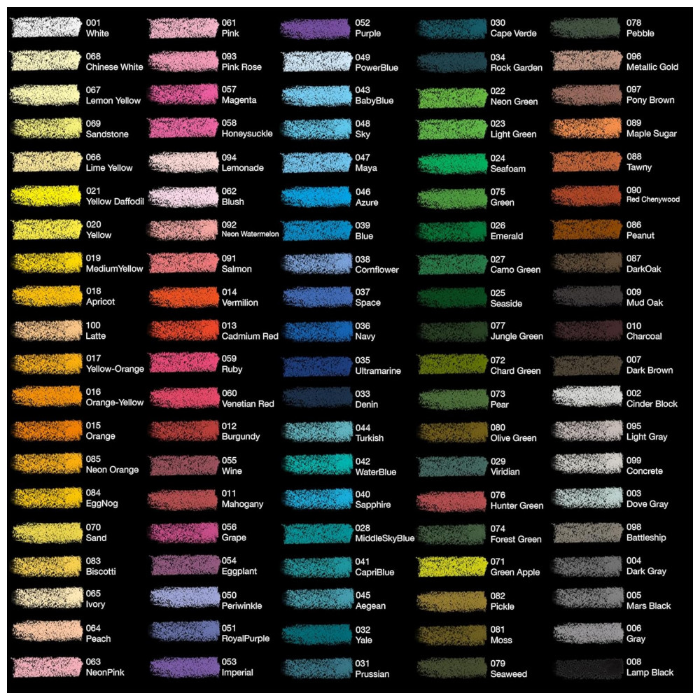 Uma ampla seleção de cores Que lindo kit de suprimentos de arte em pastel macio Do escuro ao claro, do preto ao branco, 100 cores vivas e brilhantes são bem escolhidas para satisfazer suas necessidades de giz pastel. Agora que todas as cores estão prontas, é hora de explorar sua criatividade