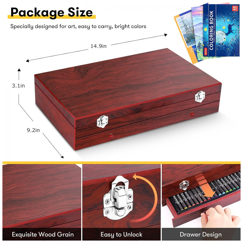 Kit de arte Deluxe de alta qualidade O estojo de arte Deluxe tem tudo o que você precisa para começar a criar em um estojo de madeira compacto Você pode começar a desenhar, colorir e pintar assim que abrir a caixa. Especialmente concebido com 2 grandes cadernos de desenho, 1 livro de colorir, 1 caixa de presente. Grande conjunto de arte para qualquer nível de artista. Este caso de arte é um ótimo presente para adultos e crianças, meninas e meninos, eles vão se divertir muito