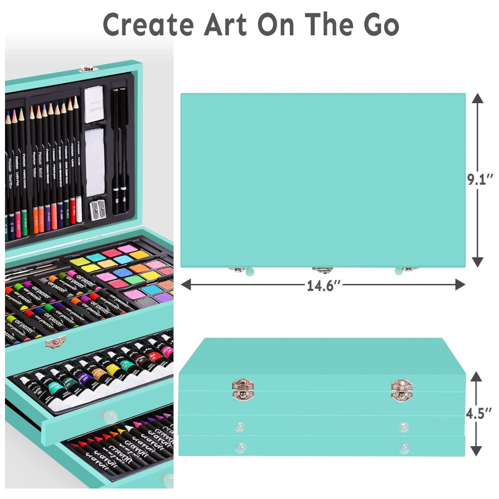 Kit Lápis de Cor Profissional com Maleta de Madeira 175 Peças e Tintas Acrílicas Aquarela Color More Azul
