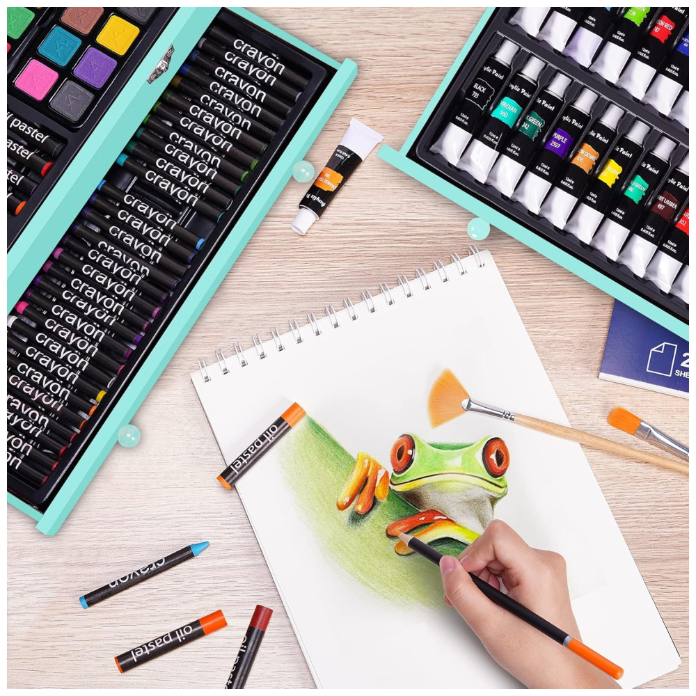 e ambiental todos os materiais de arte estão em uma caixa de madeira e cada giz de cera, lápis e pastéis nesta caixa de arte não são tóxicos. O conjunto de artistas Color More é um presente ideal para adultos, estudantes, artistas ou qualquer amante da arte