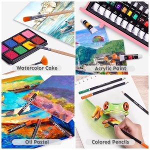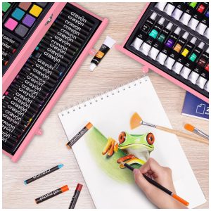 e ambiental todos os materiais de arte estão em uma caixa de madeira e cada giz de cera, lápis e pastéis nesta caixa de arte não são tóxicos. O conjunto de artistas Color More é um presente ideal para adultos, estudantes, artistas ou qualquer amante da arte