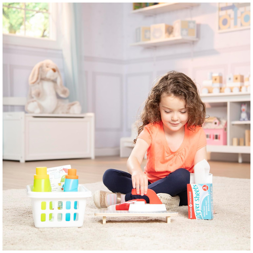 Kit Lavanderia Infantil com Ferro de Madeira e Acessórios para Crianças Acima de 3 Anos Melissa & Doug