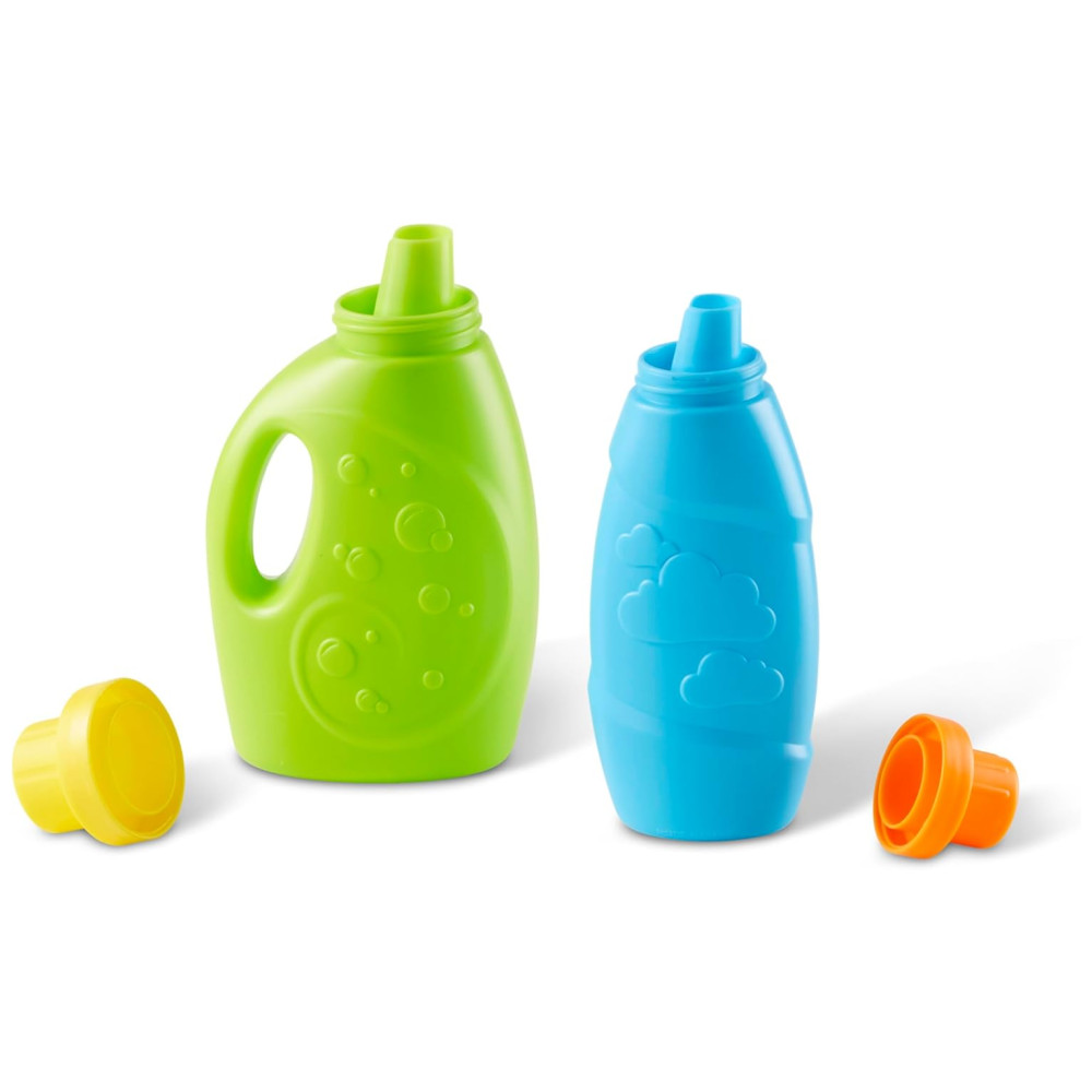 As crianças vão se divertir borrifando, medindo e pressionando com o borrifador removedor de manchas, que pode ser enchido com água, detergente e amaciante de roupas com tampas removíveis. Além disso, o conjunto conta com uma caixa com três folhas de secar falsas e um ferro e tábua de passar de madeira.