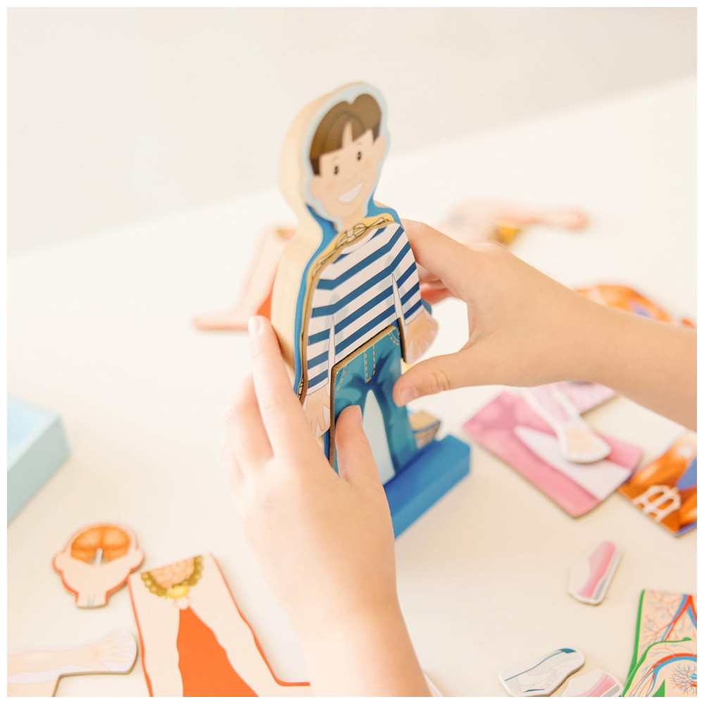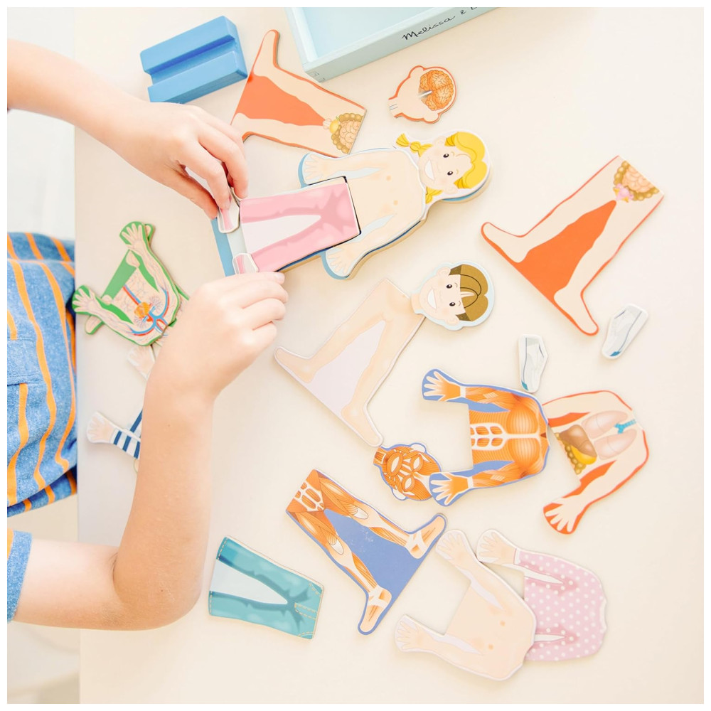 A Melissa Doug tem sido uma líder no mercado de produtos infantis há mais de 30 anos, criando produtos lindamente projetados que estimulam a imaginação e a criatividade das crianças. Este conjunto de brinquedos magnéticos para o corpo humano é parte da visão maior da empresa de retomar a infância, dando às crianças espaço e liberdade para explorar seu mundo e realizar todo o seu potencial.