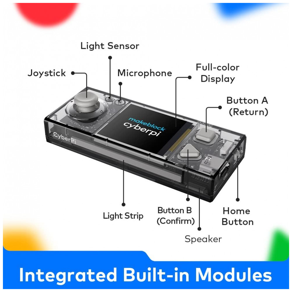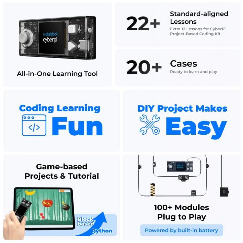 Kit Makeblock CyberPi Project‑Based com CyberPi + Pocket Shield Wi‑Fi/Bluetooth sensores integrados e suporte a Scratch e Python