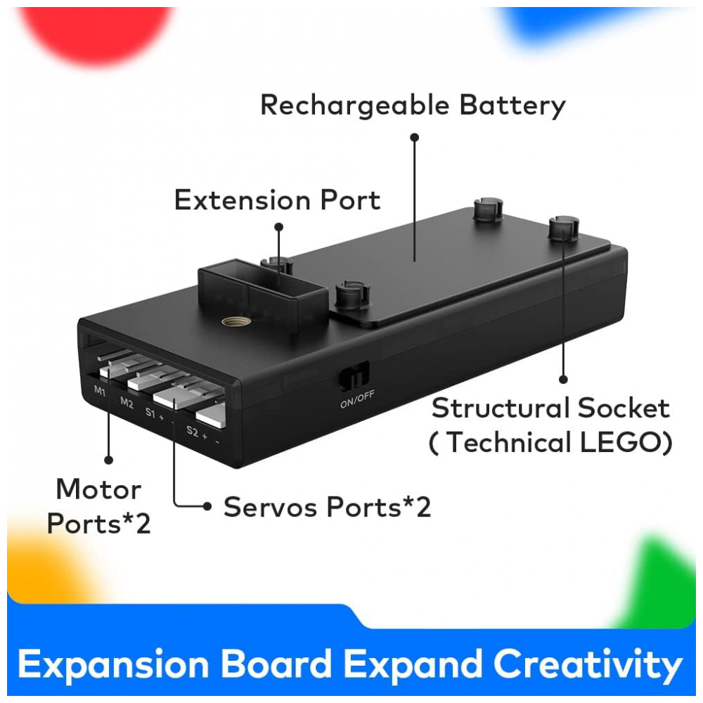 O Pocket Shield adiciona bateria recarregável de 3,7 V e 800 mAh, duas portas para motores DC e duas portas 3 pinos para servos ou fitas de LED e sensores compatíveis com Arduino, dando autonomia ao CyberPi sem cabo. O kit acompanha material didático com até 37 lições e projetos práticos (como lixeira inteligente, carro autônomo, ventilador oscilante), além de cursos básicos gratuitos no site da Makeblock.