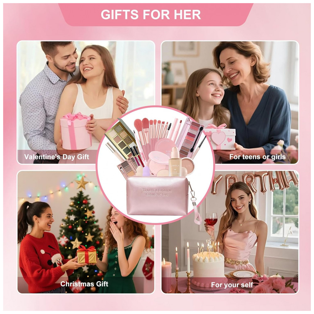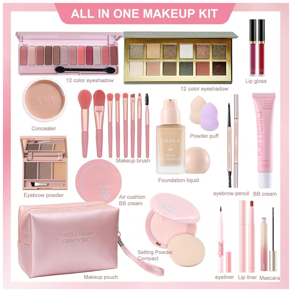 Kit Maquiagem 25 Peças Fynqwor Completo Fundação Corretivo Sombras Brilho Labial Bolsa Portátil para Mulheres e Teens
