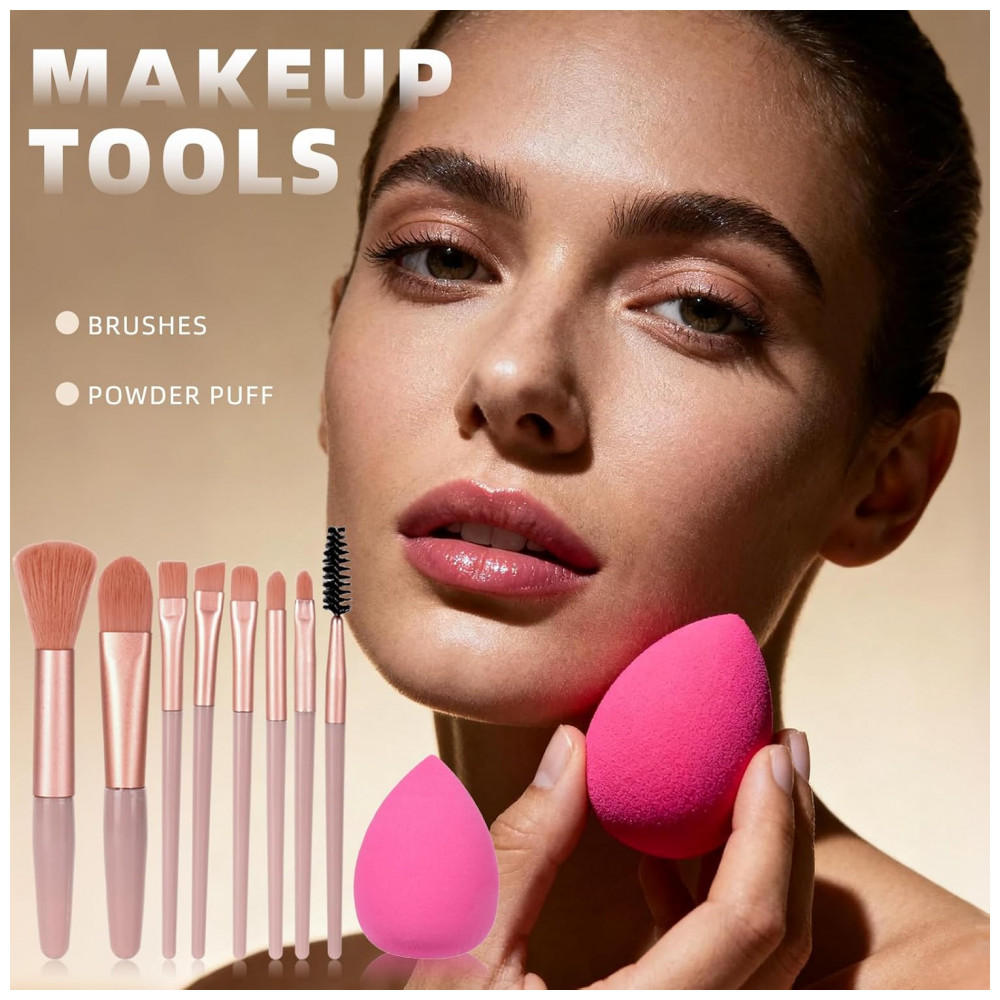 Componentes Incluídos Paleta maquiagem, paleta sombras, gloss labial, foundation líquida, corretivo, máscara, lápis sobrancelhas, delineador, puff pó, conjunto pincéis