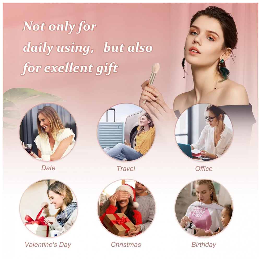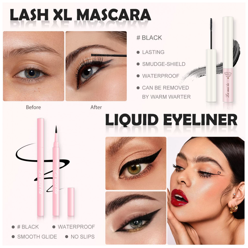 A paleta oferece pigmentação de alta intensidade e extensibilidade para sobreposições. A máscara waterproof assegura aderência duradoura, complementada pelo delineador com traços finos e controlados. Os pincéis possuem cerdas sintéticas para distribuição precisa de pós e líquidos.
