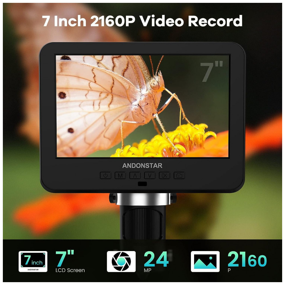 Kit Microscópio Biológico Digital 2000X HDMI com Vídeo UHD de 3 Lentes 2160P 240V Andonstar Preto