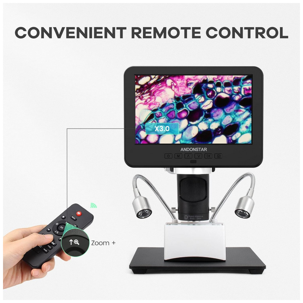 Controle remoto sem fio É conveniente para você operar a longa distância e suporta funções como descoloração da imagem e zoom digital. É especialmente adequado para demonstrações educacionais e outras cenas
