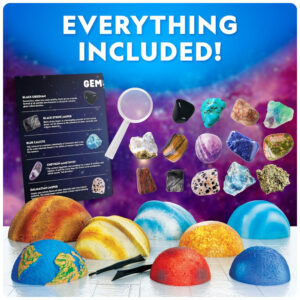 O Kit Nacional de Escavação Espacial da National Geographic oferece uma aventura científica única para crianças, combinando diversão, educação e exploração prática. Composto por oito planetas em formato de bloco, cada um contendo duas amostras reais de pedras ou gemas, totalizando 16 espécimes, este kit proporciona uma experiência de escavação emocionante e interativa. As crianças podem usar as ferramentas fornecidas para descobrir, examinar e colecionar pedras e cristais, incentivando a curiosidade sobre geologia e astronomia.