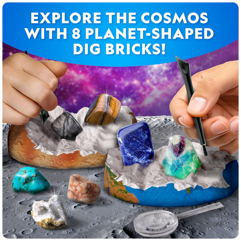 Kit Nacional de Escavação Espacial com Pedras e Gemas 8 Planetas 16 Amostras Reais Ferramentas Inclusas Aprendizado STEM National Geographic
