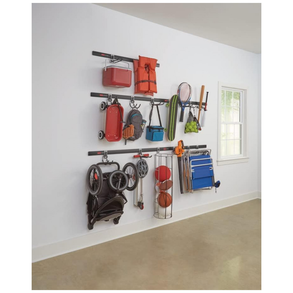 Kit Organizadores de Parede para Garagem 5 Trilhos e 20 Ganchos Rubbermaid