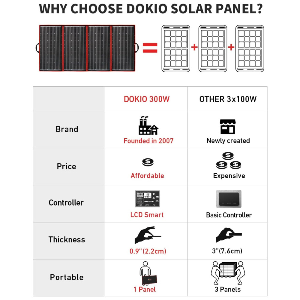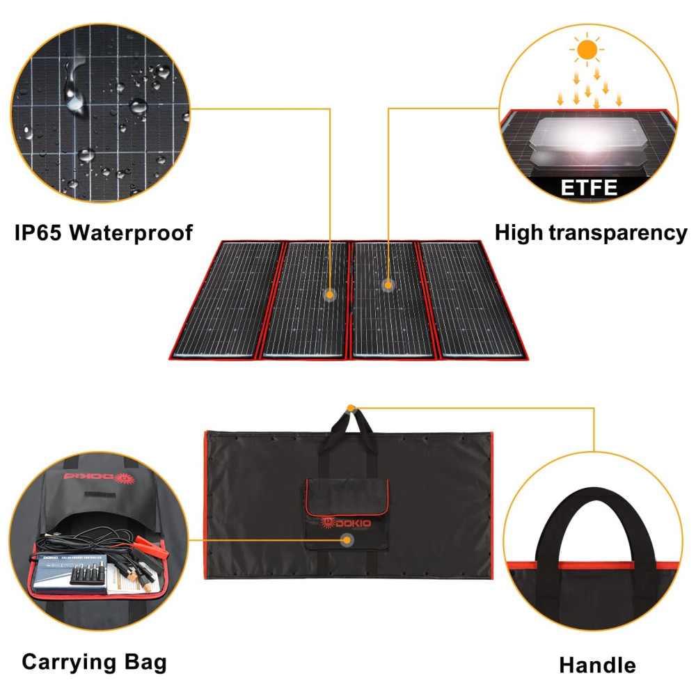 Kit Painel Solar dobrável monocristalino com controlador de carregador 300W 12V 1 unidade DOKIO Preto