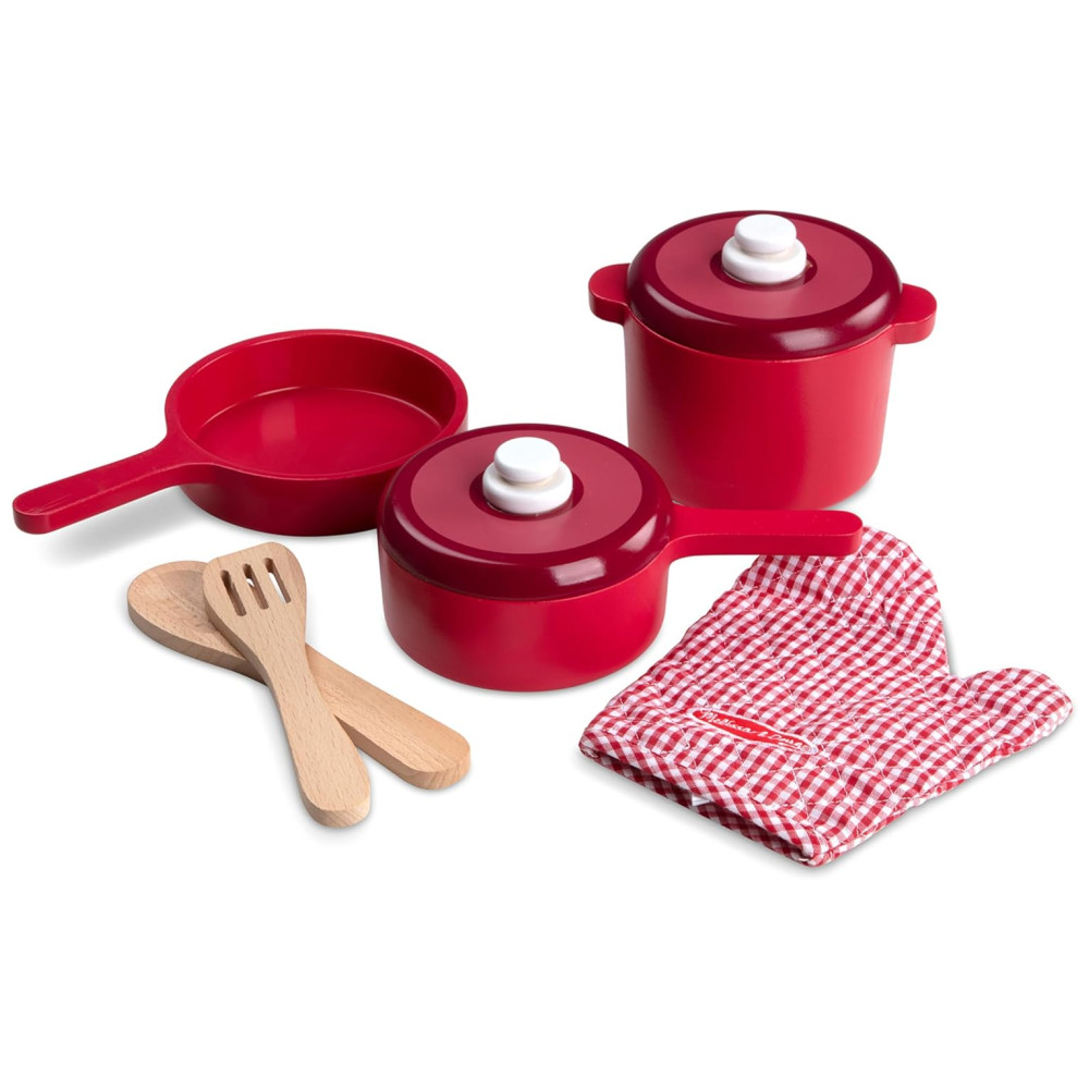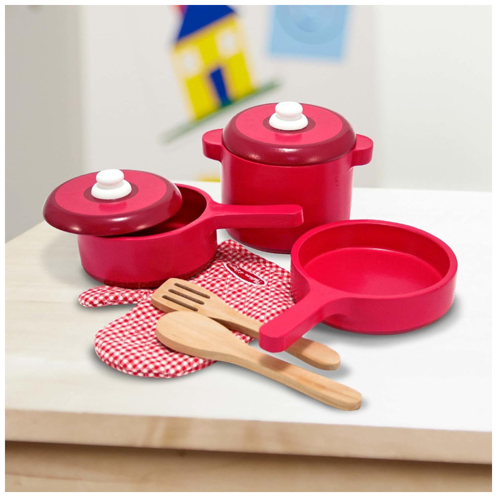 Kit Panelas e Acessórios de Cozinha Infantil de Madeira com 8 Peças para Crianças Acima de 3 Anos Melissa & Doug Vermelho